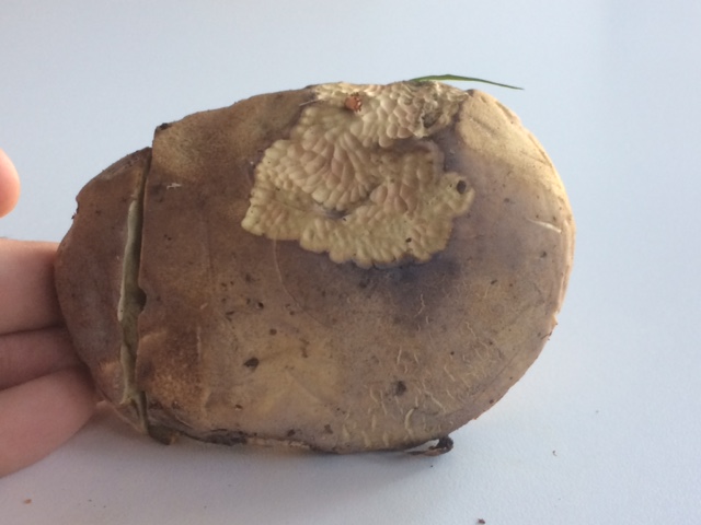 Carne: amarilla, azulea suavemente al corte, sobre todo en la zona cercana a los tubos.