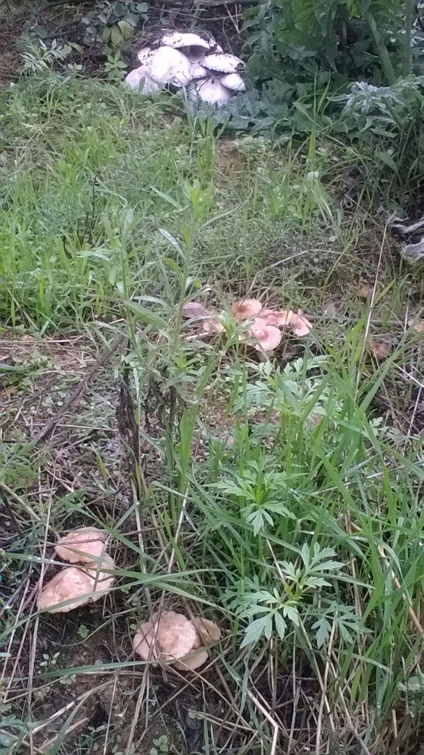 Y éstas diría que son de la familia Agaricus, si no fuera por el tallo tan largo diría que son champiñones.
