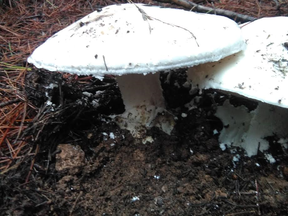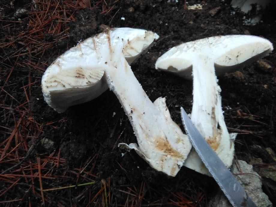 Temperatura suave (12-25 ºC) levantando el mantillo con fuerza agrupadas (1 a 3 unids). En las fotos podéis ver en detalle la morfología. Corté una de ellas y son blancas totalmente también en el interior con olor muy suave. Están creciendo junto a Suillus Granulatus.
