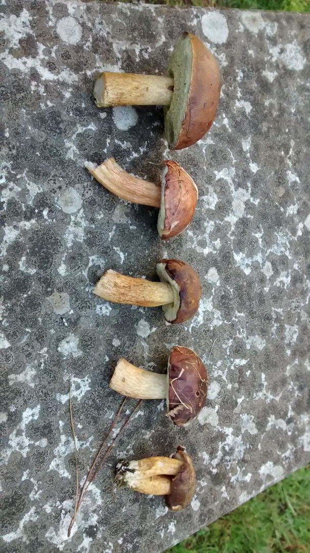 Hola Iván. El primero es un boletus edulis, los siguientes son xerocomus badius y la última una russula, a botepronto diría que sardonia.