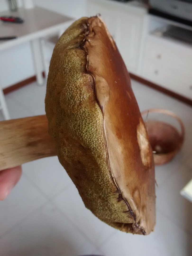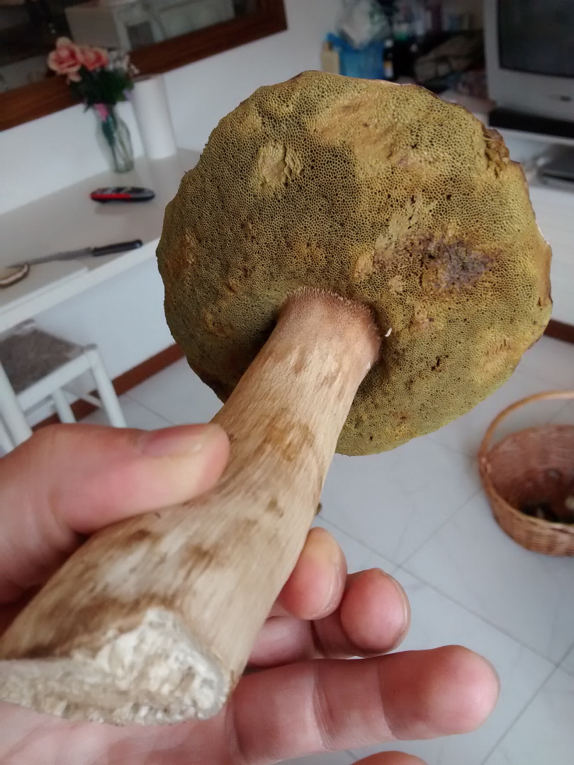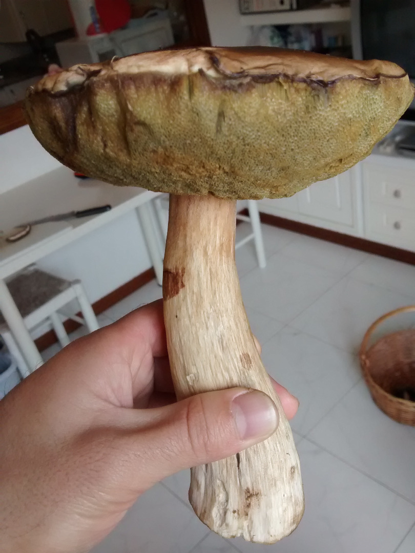 Sé que con el tiempo se van poniendo verdosas, pero sigo dudando de la especie en cuestión...los edulis llegan a adquirir esa forma casi concava? y el sombrero tiene brillo?