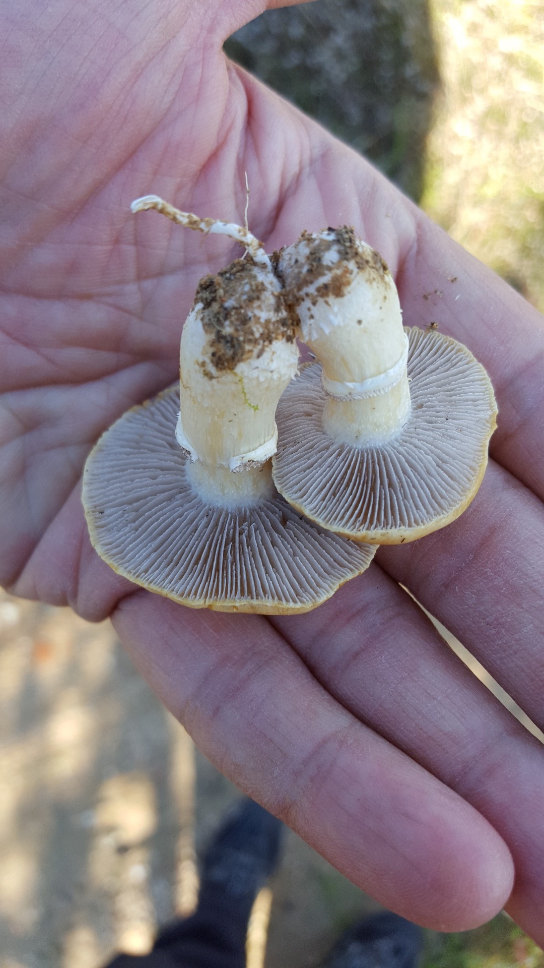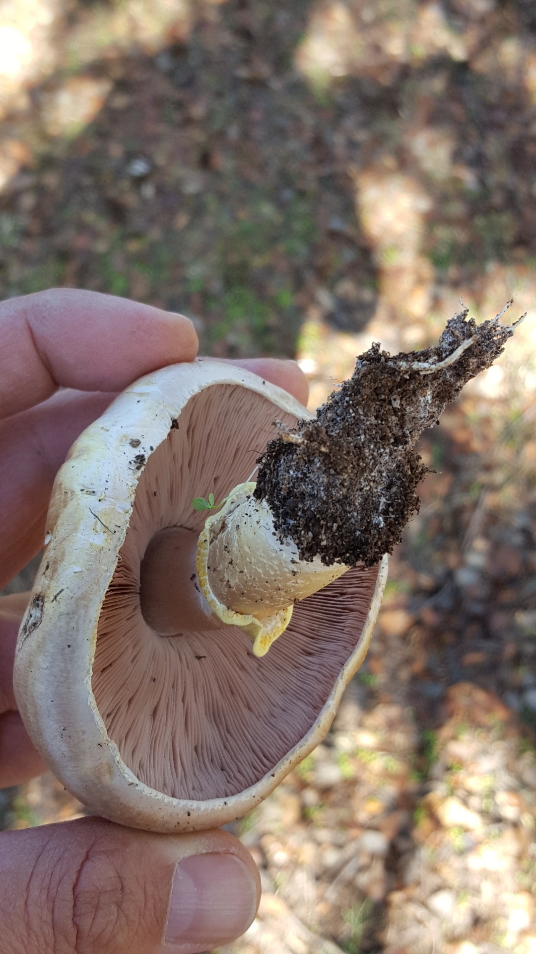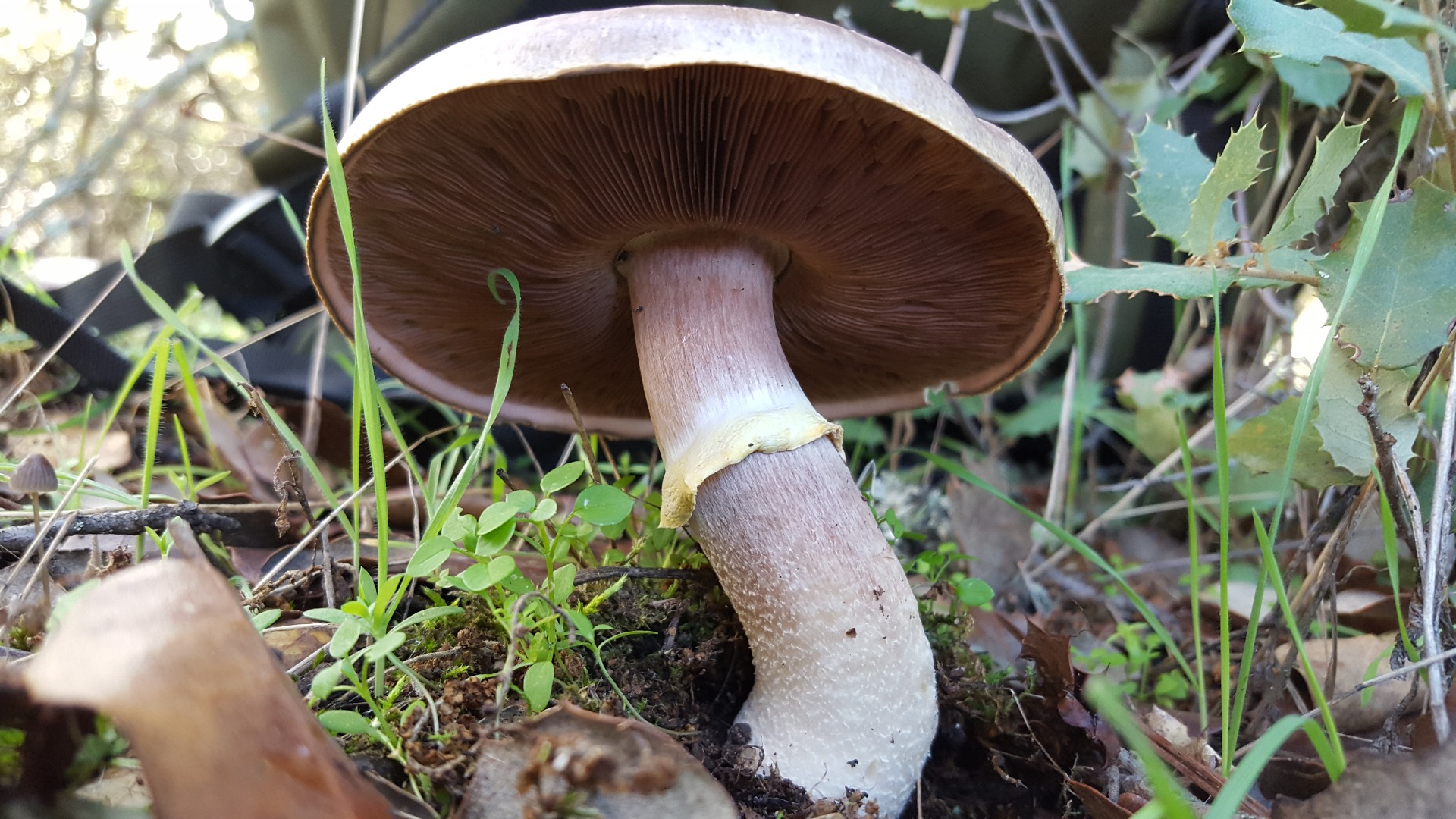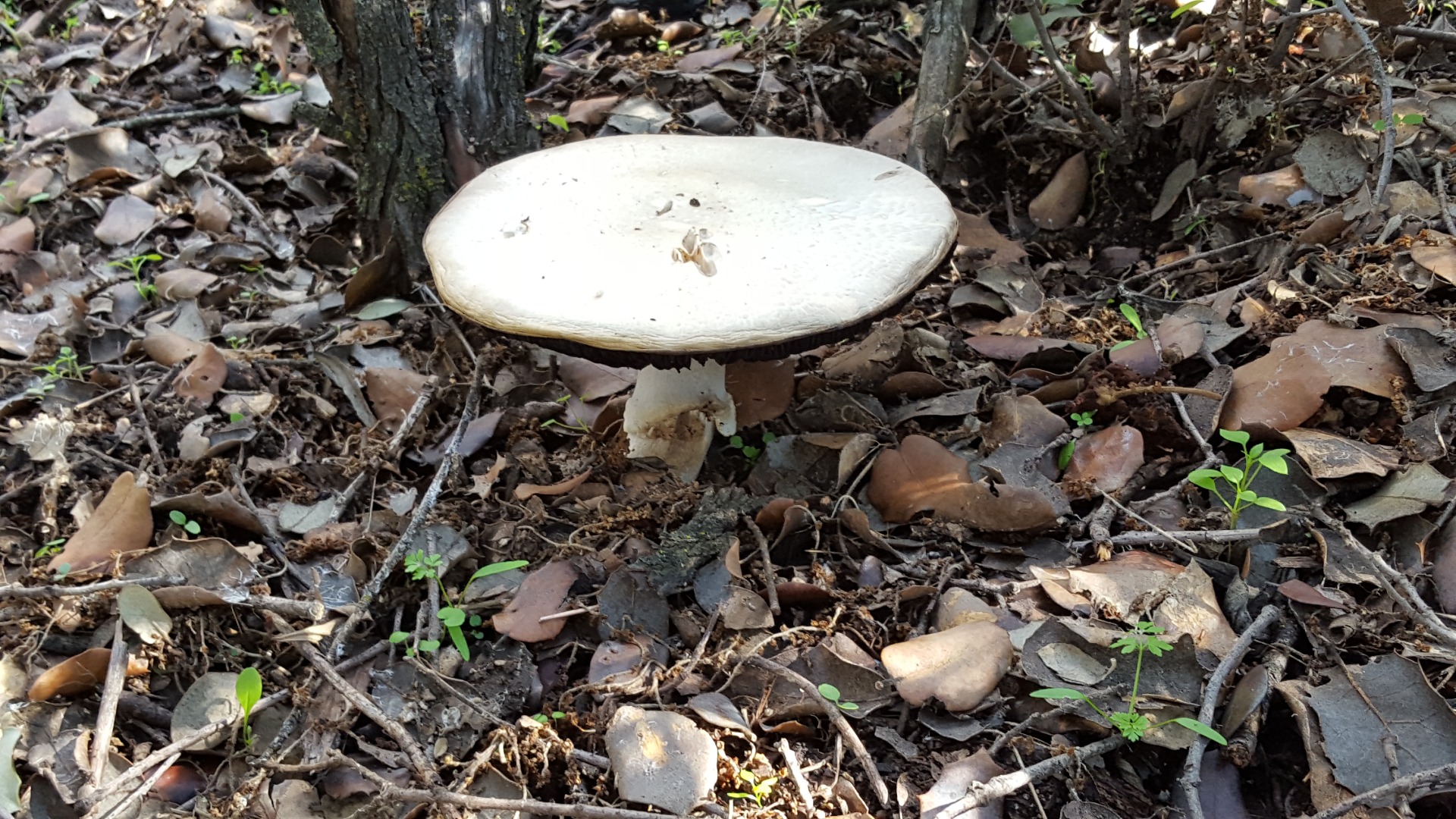 Y por último esta creo que es Agáricus sylvicola, varias setas de gran porte bajo una encina enorme: