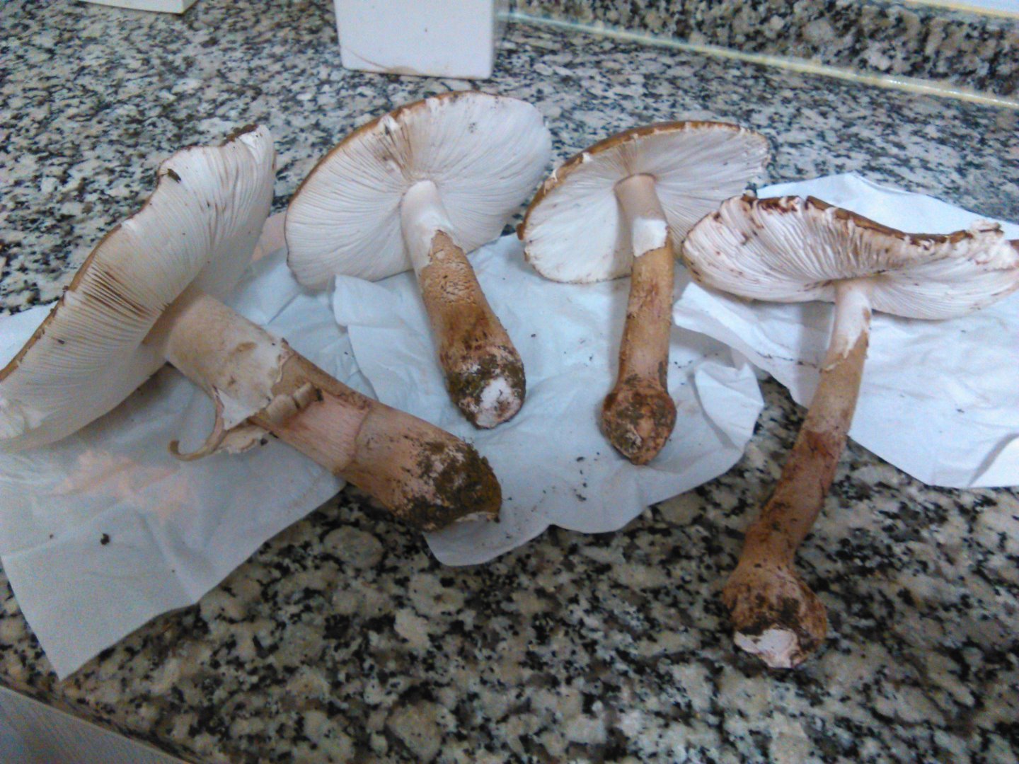 Gracias a todos por vuestras respuesta me ha ayudado mucho, solo comentar sobre la Amanita caesarea que la he partido y el pie y laminas son amarillo. La carne del sombrero y pie por fuera es amarilla y por dentro blanca.