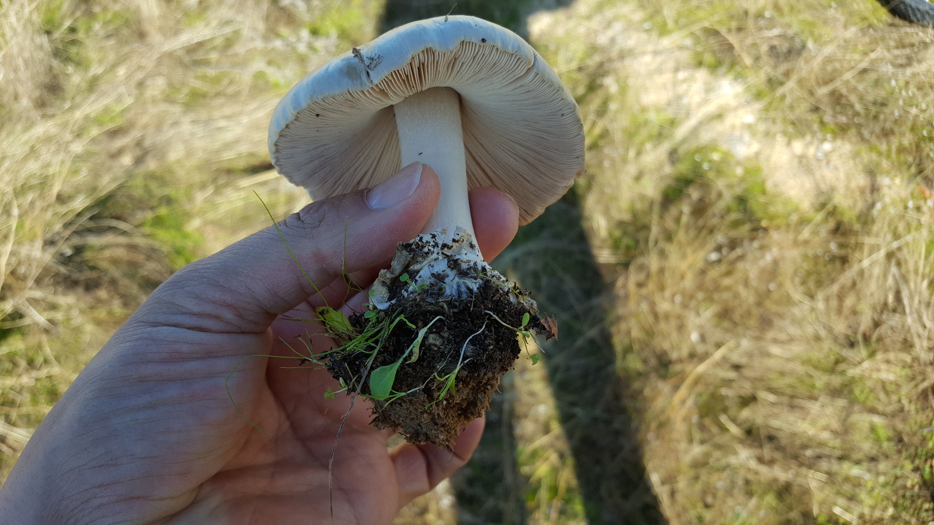 Uf, pues siento en el alma discrepar , por mi parte no veo la Amanita vaginata por ningún lado, me uno a la propuesta de Volvopluteus gloiocephalus, en los ejemplares jóvenes las láminas son en principio blancas para virar a un color rosado de adultas (el ejemplar que nos muestra no me parece tan adulto), dejo una imagen mía donde se aprecia este detalle.