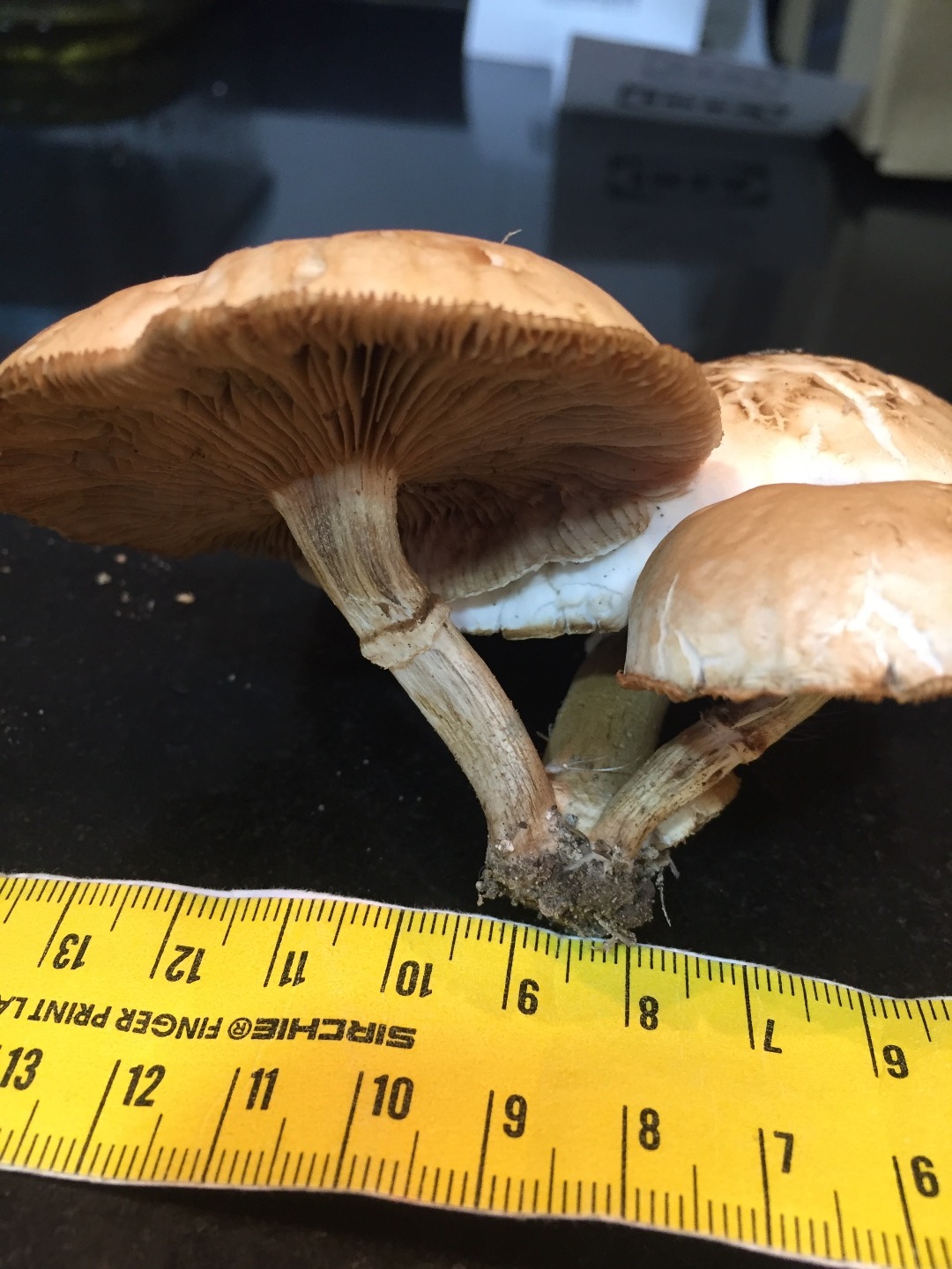 hola Gabriel,la primera seta como dice Javi se trata del genero Agrocybe según los datos que das y no encontrarse sobre madera me decantaría por Agrocybe praecox aunque es una seta primaveral ,aveces suele aparecer en otras estaciones www.fungipedia.org/hongos/agrocybe-praecox.html ,la segunda me quedo con el genero suillus .un cordial saludo.