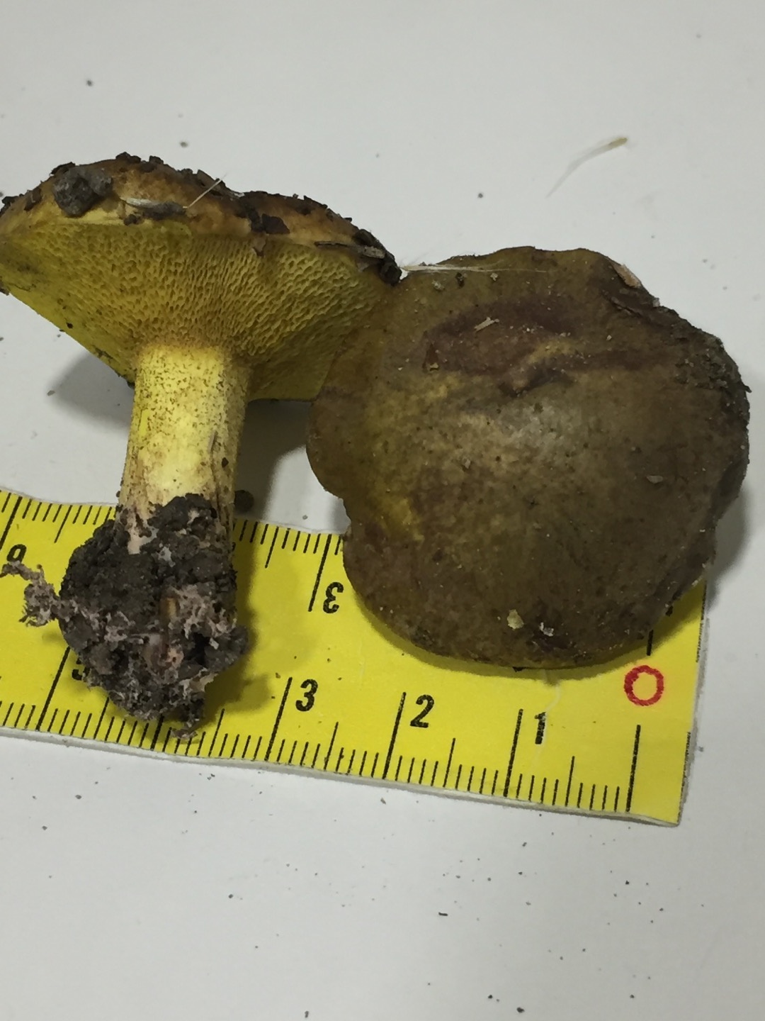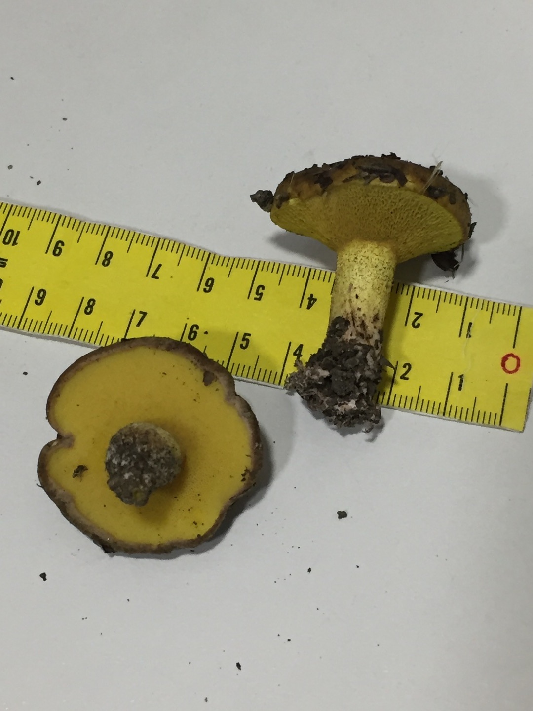 Hola Gabriel, viendo la imagen del corte, el color casi blanco tan claro, creo que podría tratarse de Suillus granulatus.