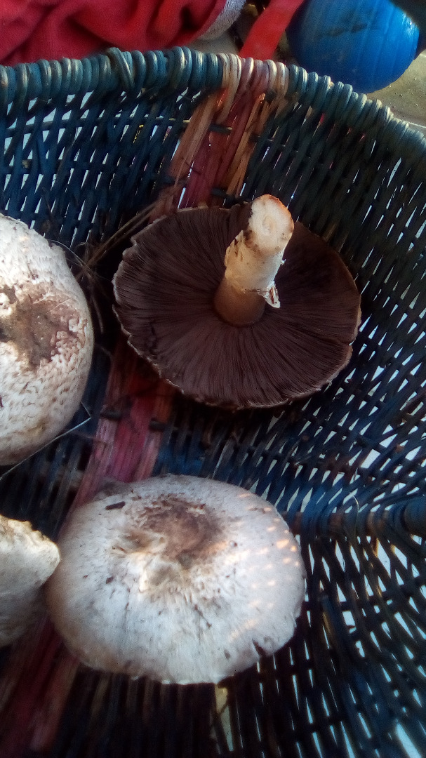 Hola Miguel, podría tratarse de Agaricus campestris var. squamulosus, pero como hay varios Agaricus muy parecidos, sin más datos lo mas sensato es dejarlo como Agaricus sp.