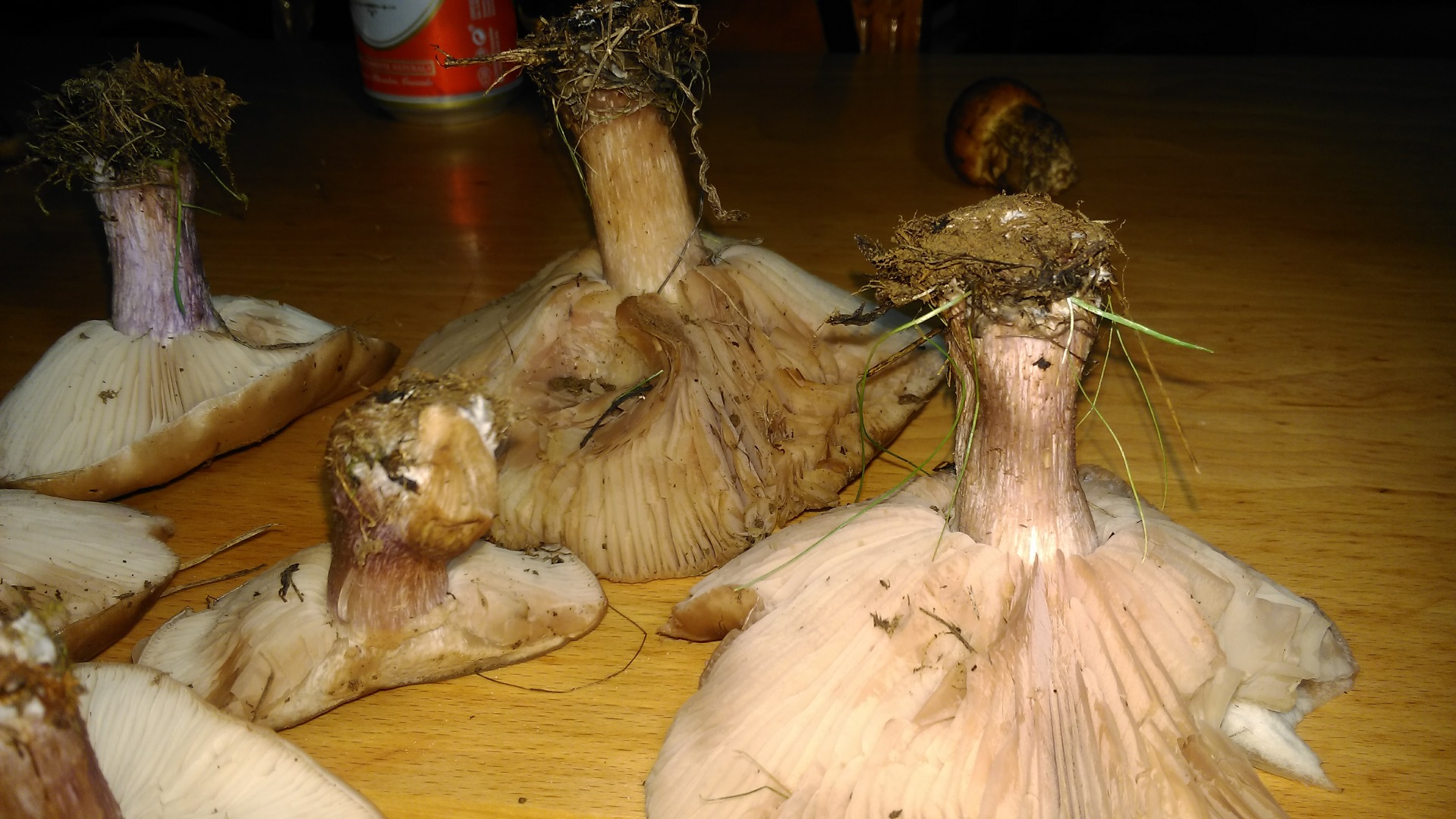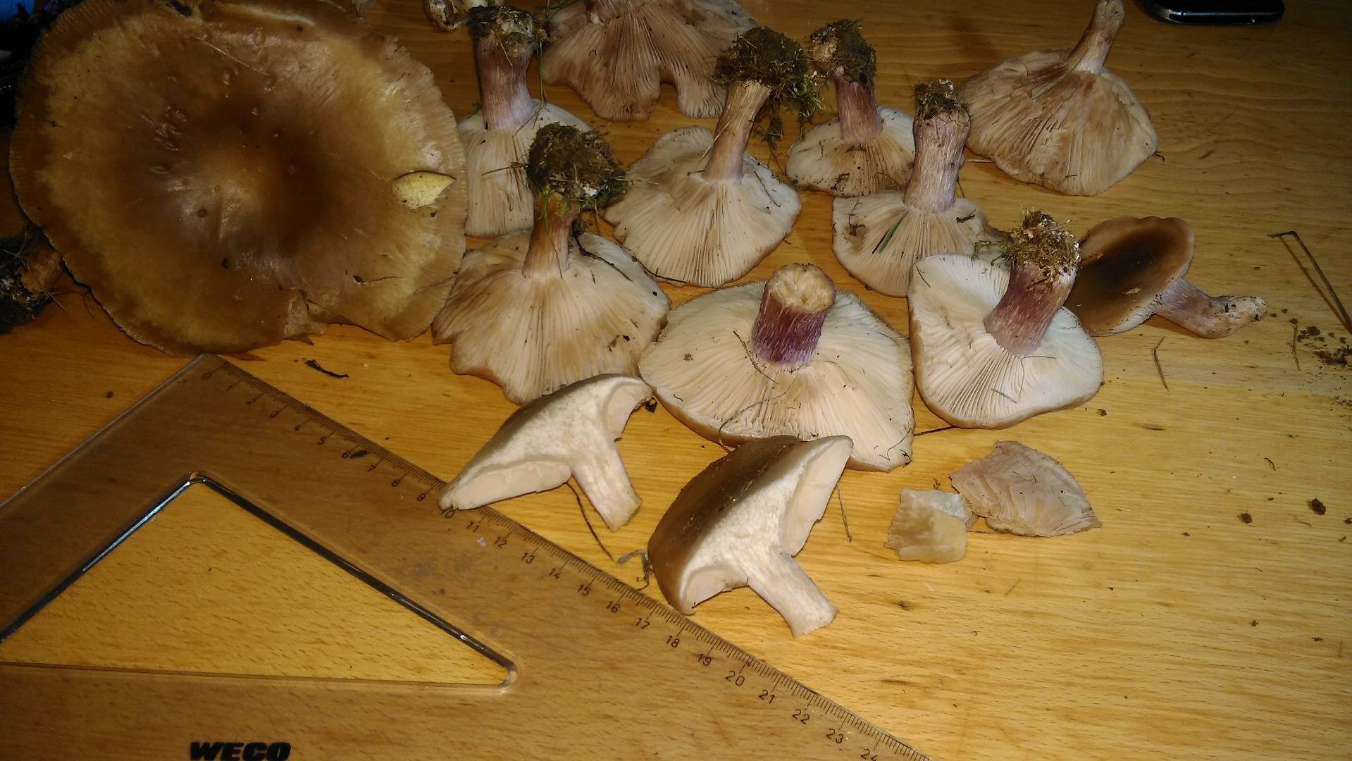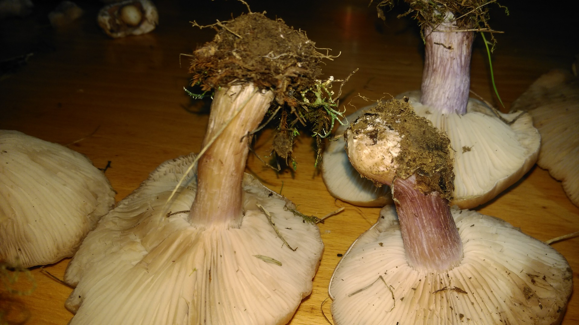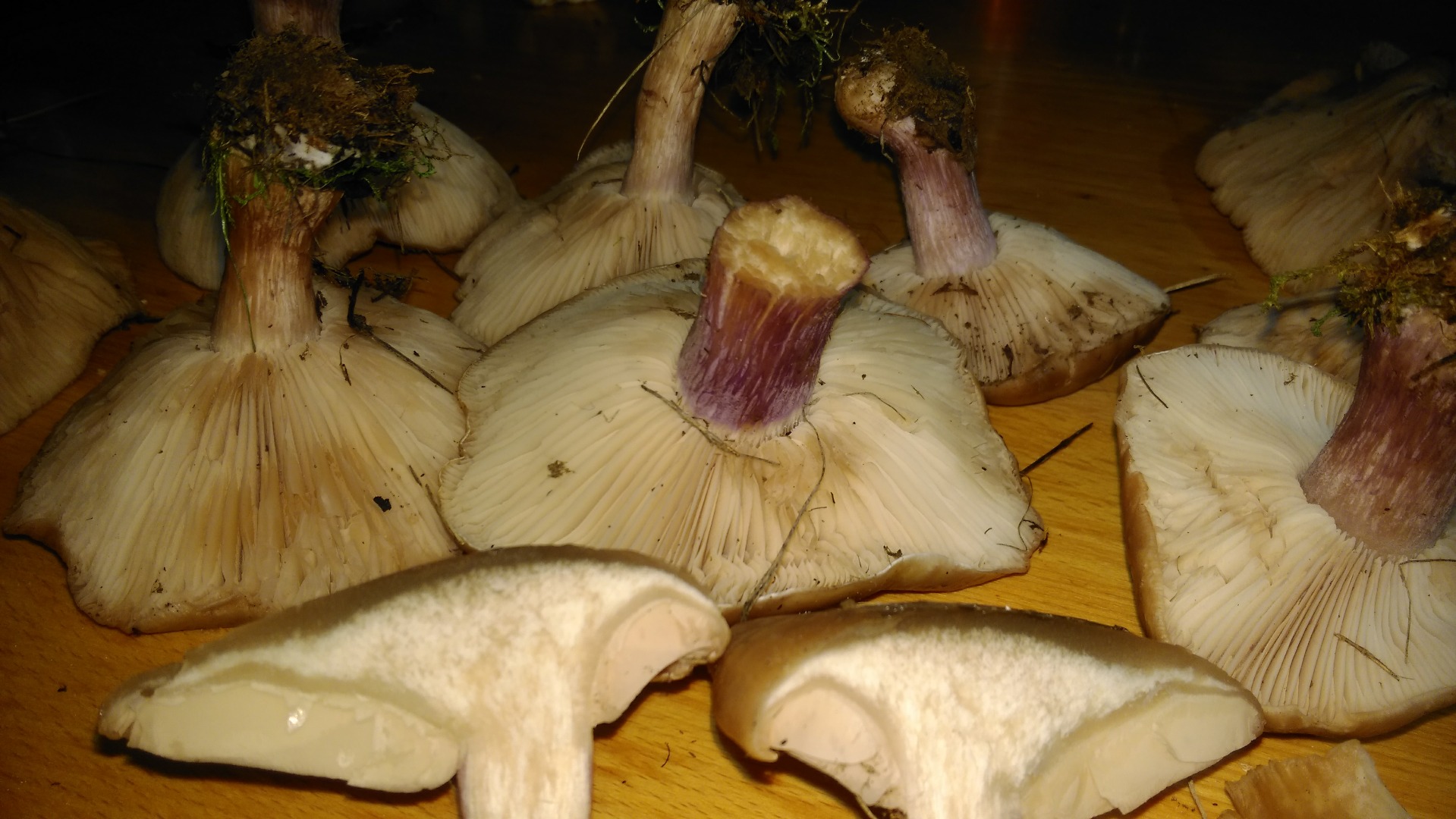 Las primeras no consigo ver una foto de la parte superior del sombrero claramente, pero de todas formas me parece que son Lepista personata. El Boletus quizás el pinicola