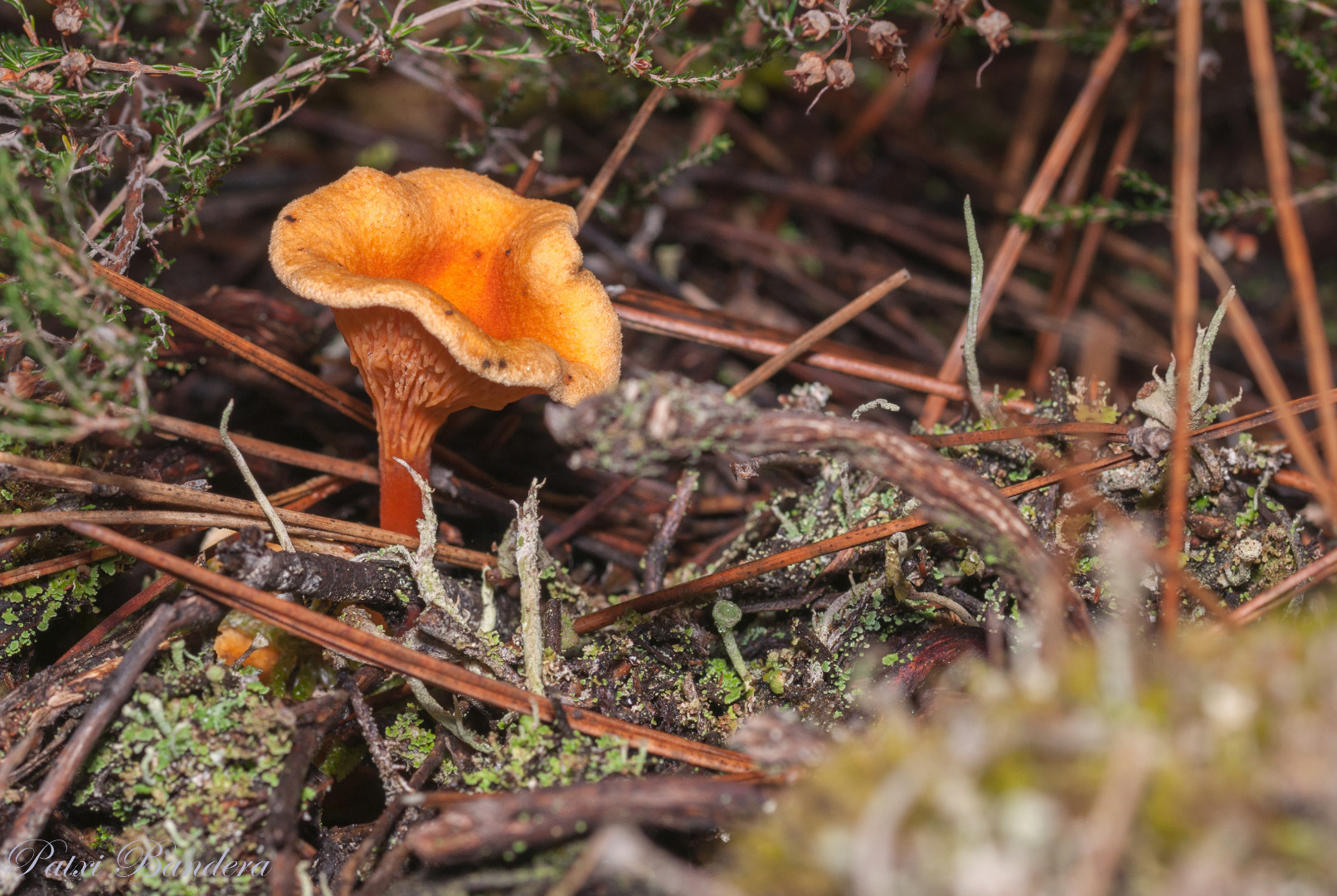 Hola a todos. Soy nuevo aquí y me gustaría que me ayudarais a identificar esta seta. Por la descripción puede ser una Cantharellus friesii, pero no hay foto de ella en la página de Fungipedia. La foto no tiene retoques, sólo conversión de NEF a JPG, y fué tomada entre pinos cerca de León. Gracias por vuestra ayuda.