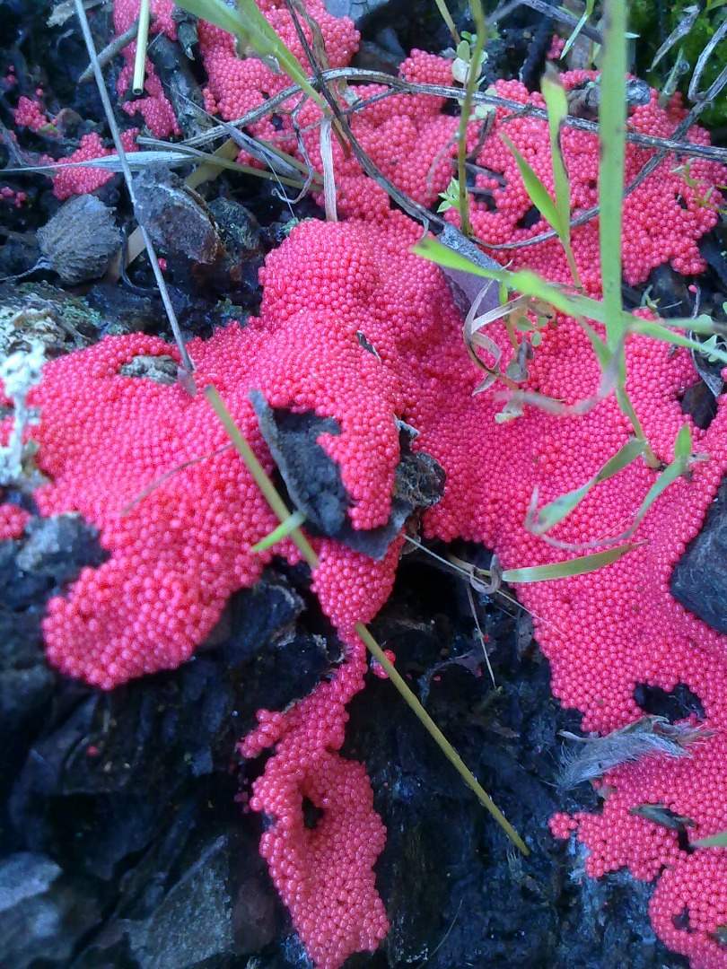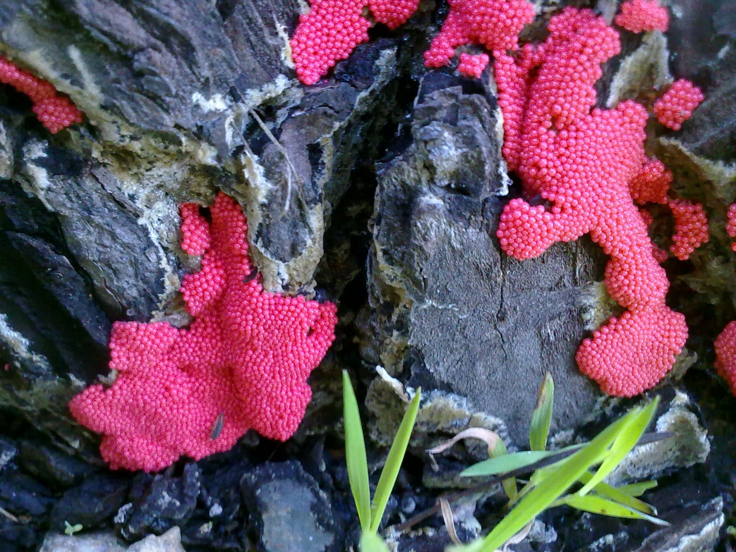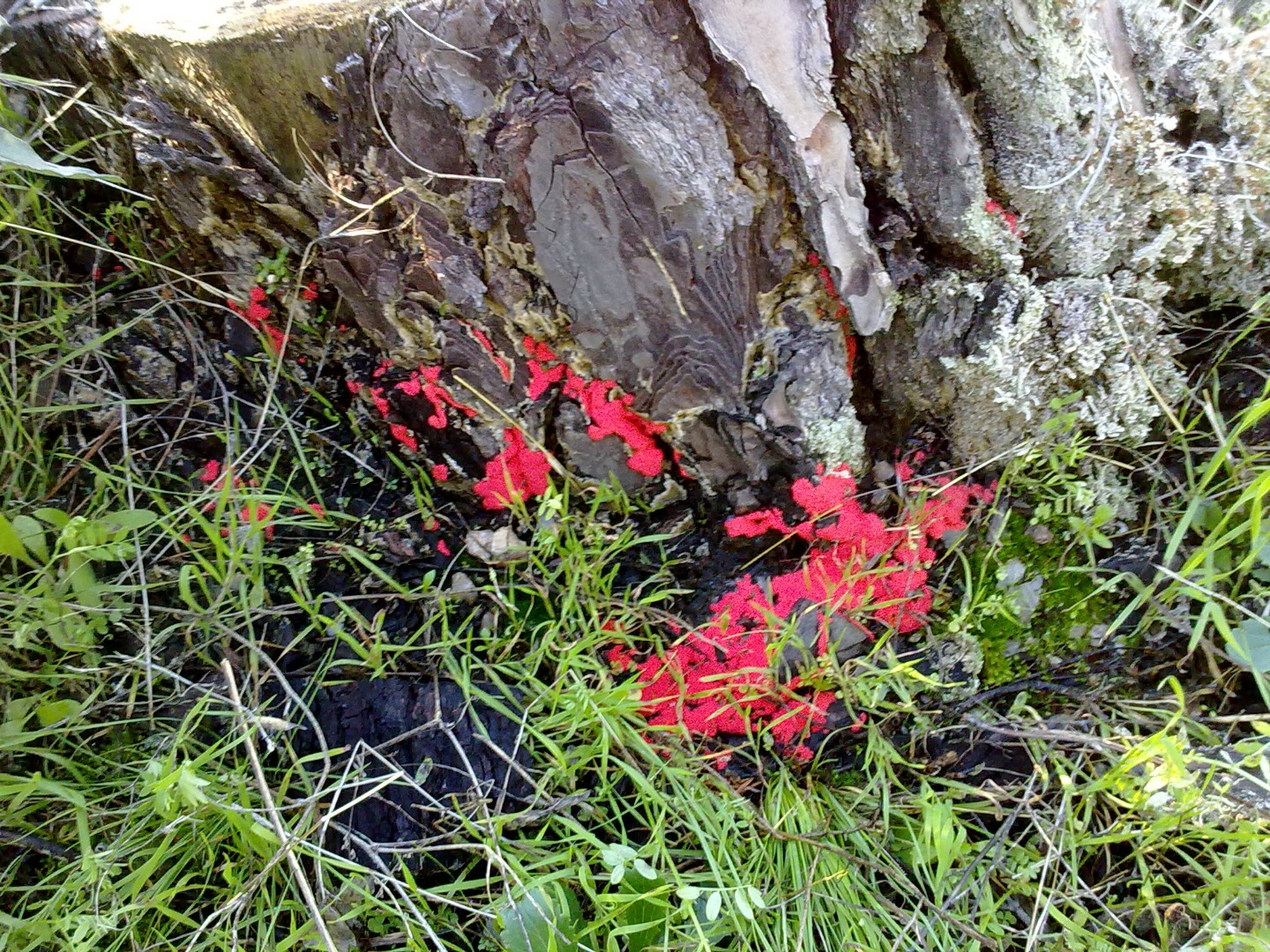 Hace poco mas de dos años en un buen paseo entre pinos me llamó poderosamente la atención unos mixos de un color rojo que nunca antes había visto en otros hongos. En aquel entonces no disponía de microscopio, pero después de mirar y mirar por las webs....llegué a la conclusión que podrían tratarse de Arcyria ferruginea pero repito que no tengo pruebas microscopicas que lo confirme, pero por suerte si unas bellas imágenes...hay van.