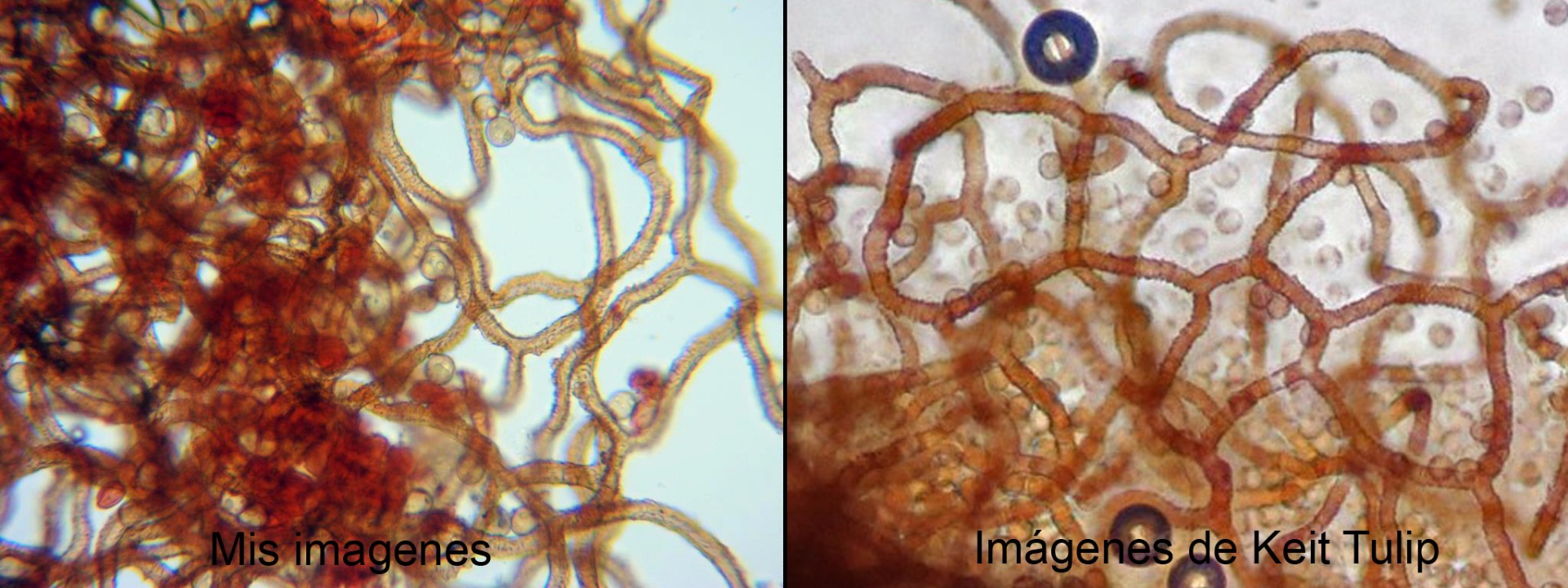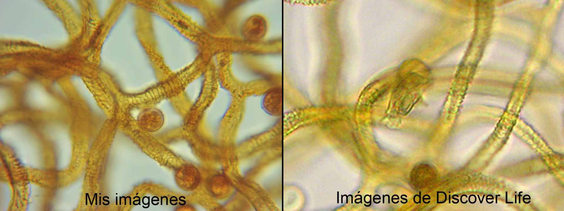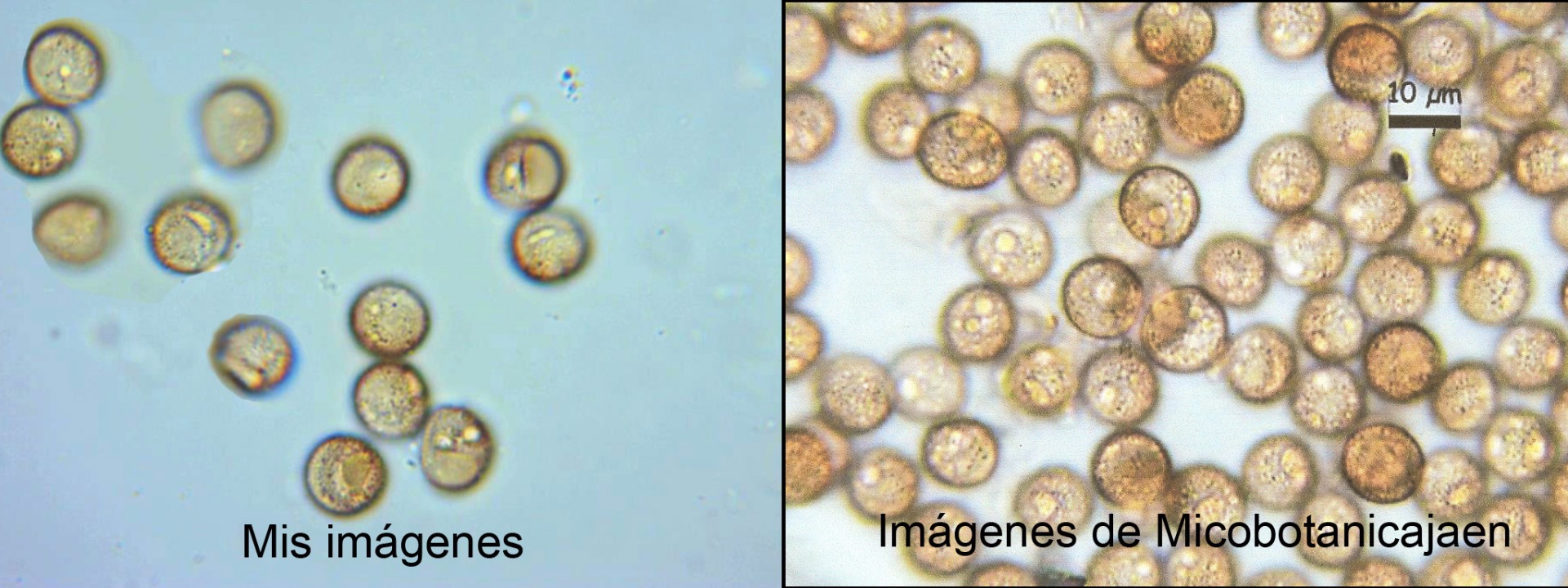 En cuanto al aspecto de las mismas he preparado nuevamente unas muestras con agua al igual que el enlace, para poder sacar nuevas imágenes de las mismas. Os dejo una comparativa también del aspecto morfológico de las esporas.