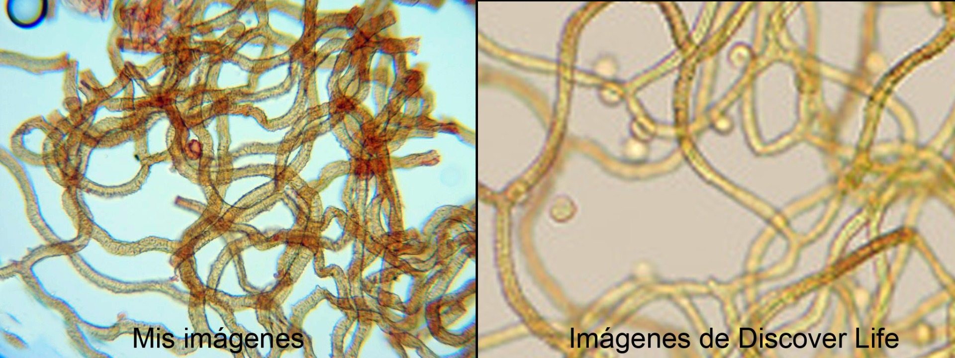 En este caso coincide la medida del capilicio de 5;6 con la de 4,4;6,7 de mi propuesta, asimismo la medida esporal de 9-11 con las 9,8-11 de mi propuesta. Vamos ahora con la morfología del capilicio y las esporas.