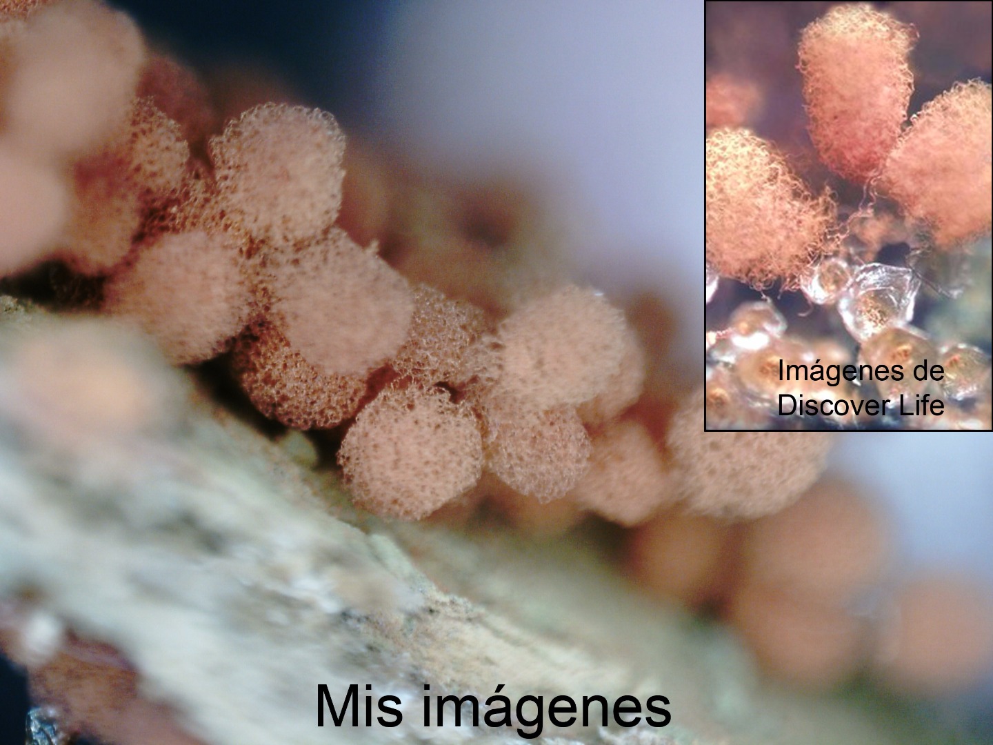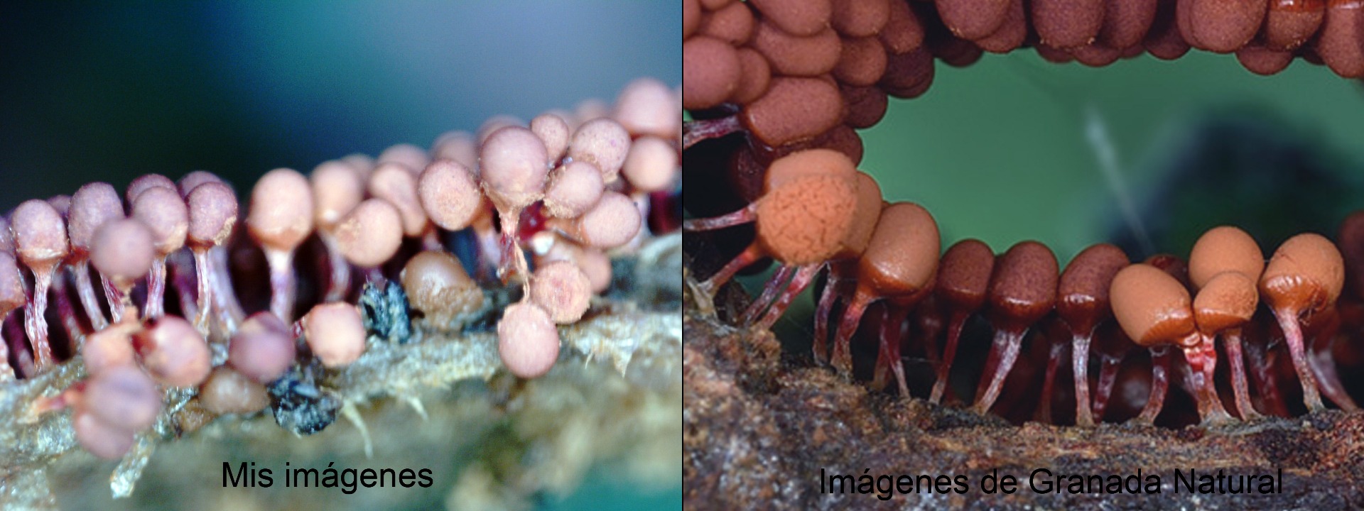 En cuanto al capilicio os dejo dos imágenes de una comparativa del mío con imágenes del capilicio de Arcyria ferruginea del mismo enlace de Discover Life
