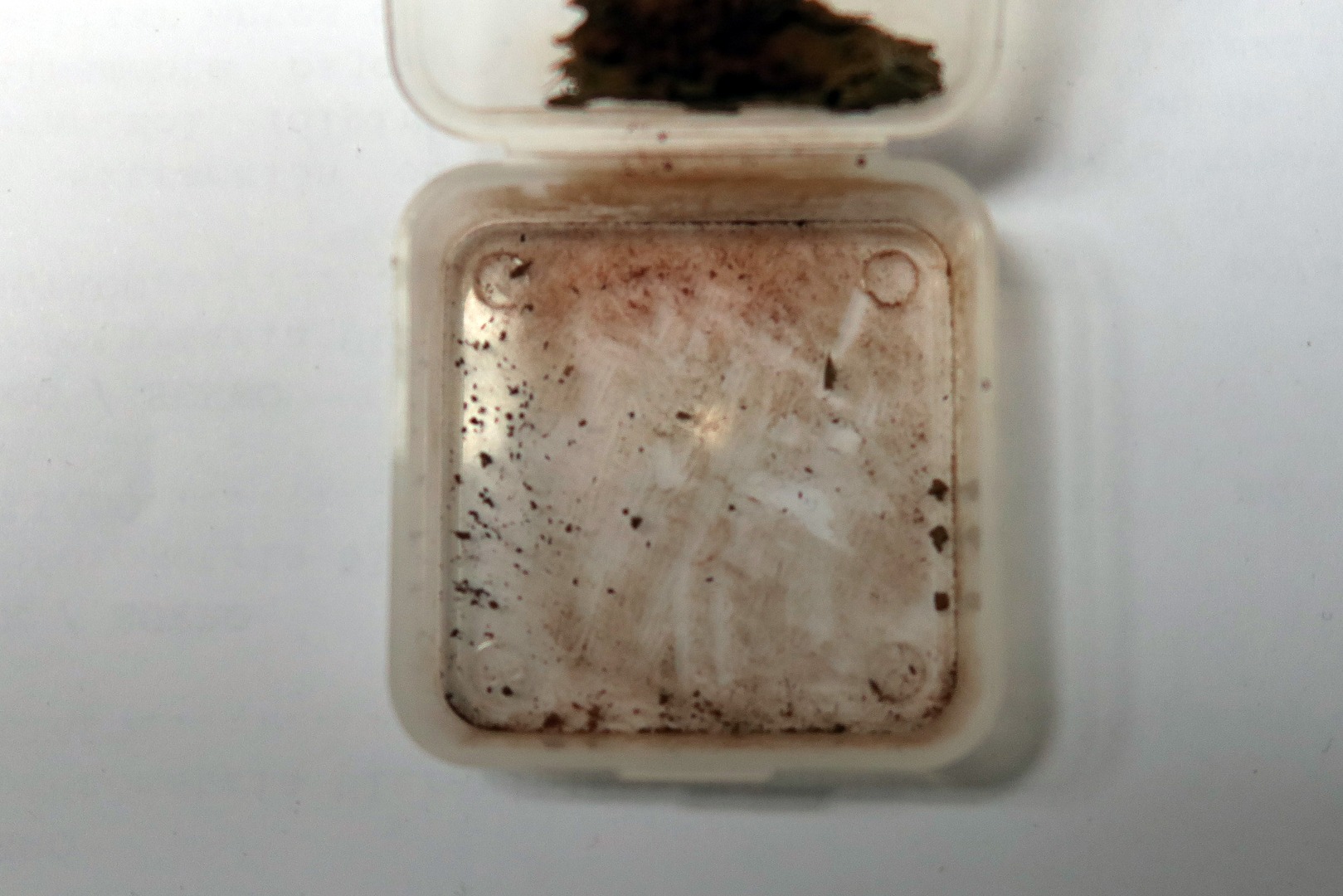 En cuanto al color de la esporada en masa a mí me parecía el de mi propuesta como muy rojizo, este punto me tenía bastante mosca, aunque hay autores que describen a la especie con variabilidad de colores , pasando por el color frambuesa, este ya encajaría mas con la primera imagen de la esporada, para no dejar cabos sueltos, hoy y ya pasados bastantes días de la primera toma, he vuelto a sacar una imagen de la esporada en el mismo recipiente ,esta vez sobre fondo blanco.