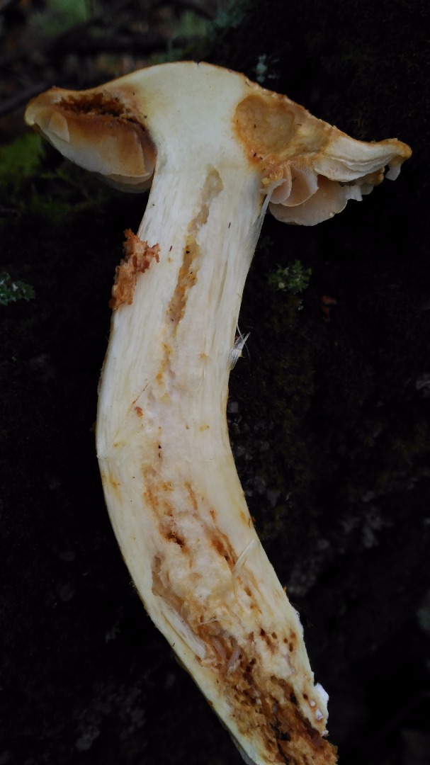 y segundo: no me cuadra con hebeloma mesophaeum, porque el pie es mas grueso y tiene escamas. quizas pudiera ser Hebeloma radicosum, que te parece a ti?