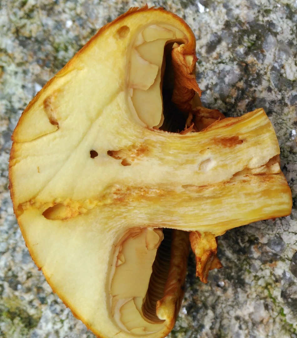pie con anillo estriado y proporcionado carne de color amarillo verdoso