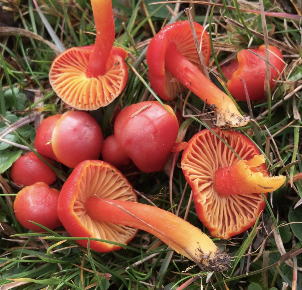 Hola Juan Antonio, la primera se trata muy probablemente de Hygrocybe coccinea, la segunda por ser de prado y con este mamelón, me inclinaría por Melanoleuca sp.