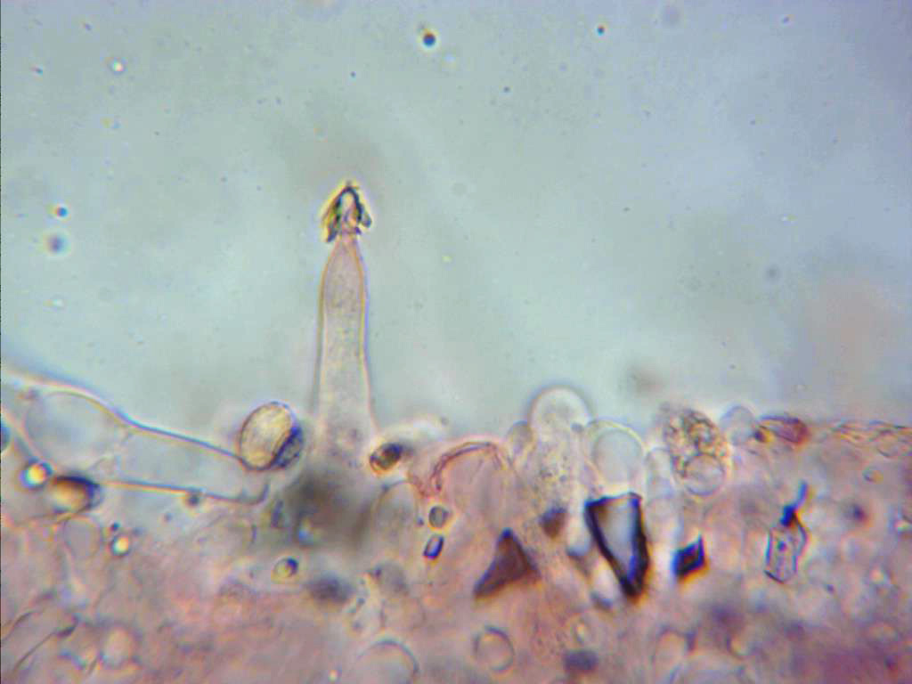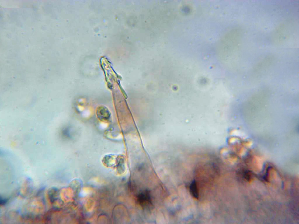 Te dejo una imagen mía de Melanoleuca polioleuca y dos imágenes de sus característicos queilocistidios, esta también muy parecida a la que nos muestras, por lo que se puede diferenciar de la Melanoleuca melaleuca y de la graminicola.