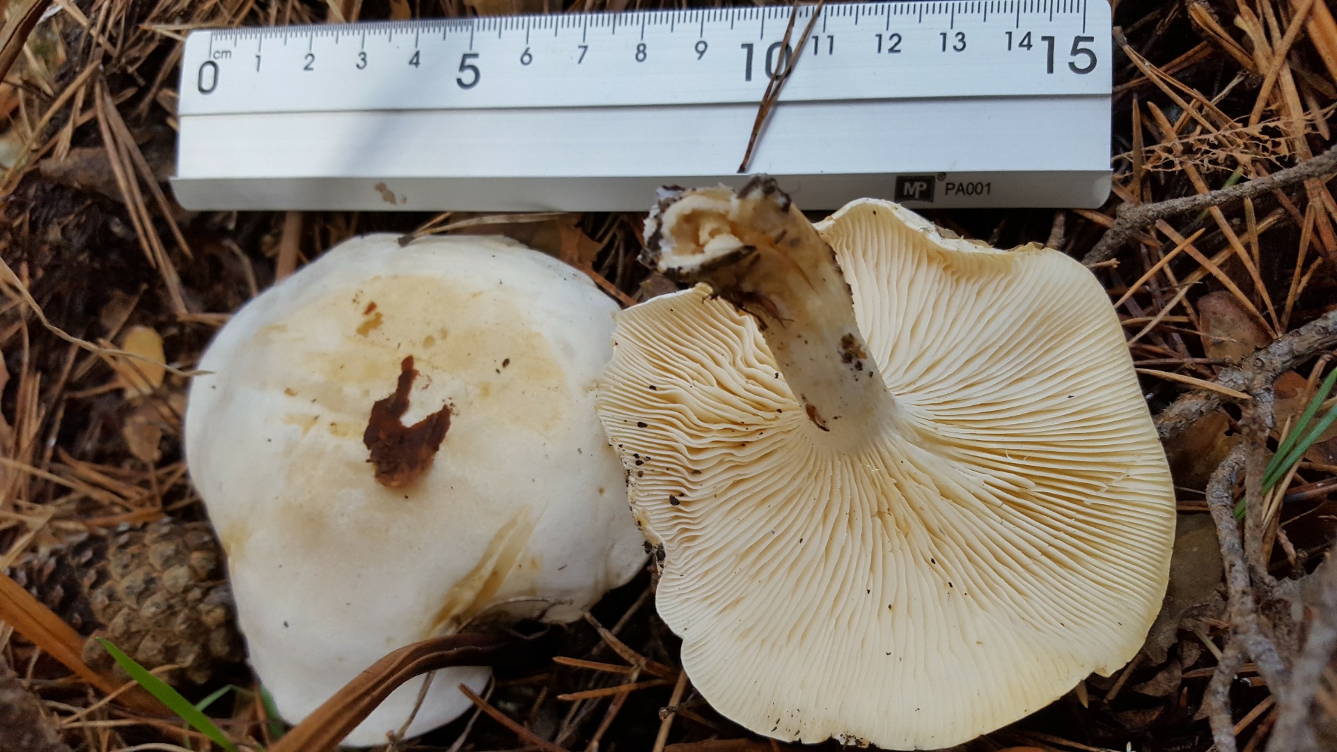 Hola Alfonso, en cuanto al Tricholoma, de acuerdo con Txelu, Tricholoma sejunctum, y en el caso de la última, siento discrepar con mi amigo Joseba, según mi criterio, la Rhodocollybia maculata es una de las que me encuentro habitualmente, y he tenido el placer de pasarla por dos veces por el micro, esta no acostumbra a presentar unas láminas tan decurrentes, como las de tu imagen, yo miraría por Clitocybe, no se aprecia claro en tu imagen pero parece tener un poco de pruina en su superficie y un color un poco cremoso en las láminas, quizás Clitocybe rivulosa. Te dejo un par de imágenes mías de Rhodocollybia maculata en donde se aprecia el detalle de las láminas no decurrentes.
