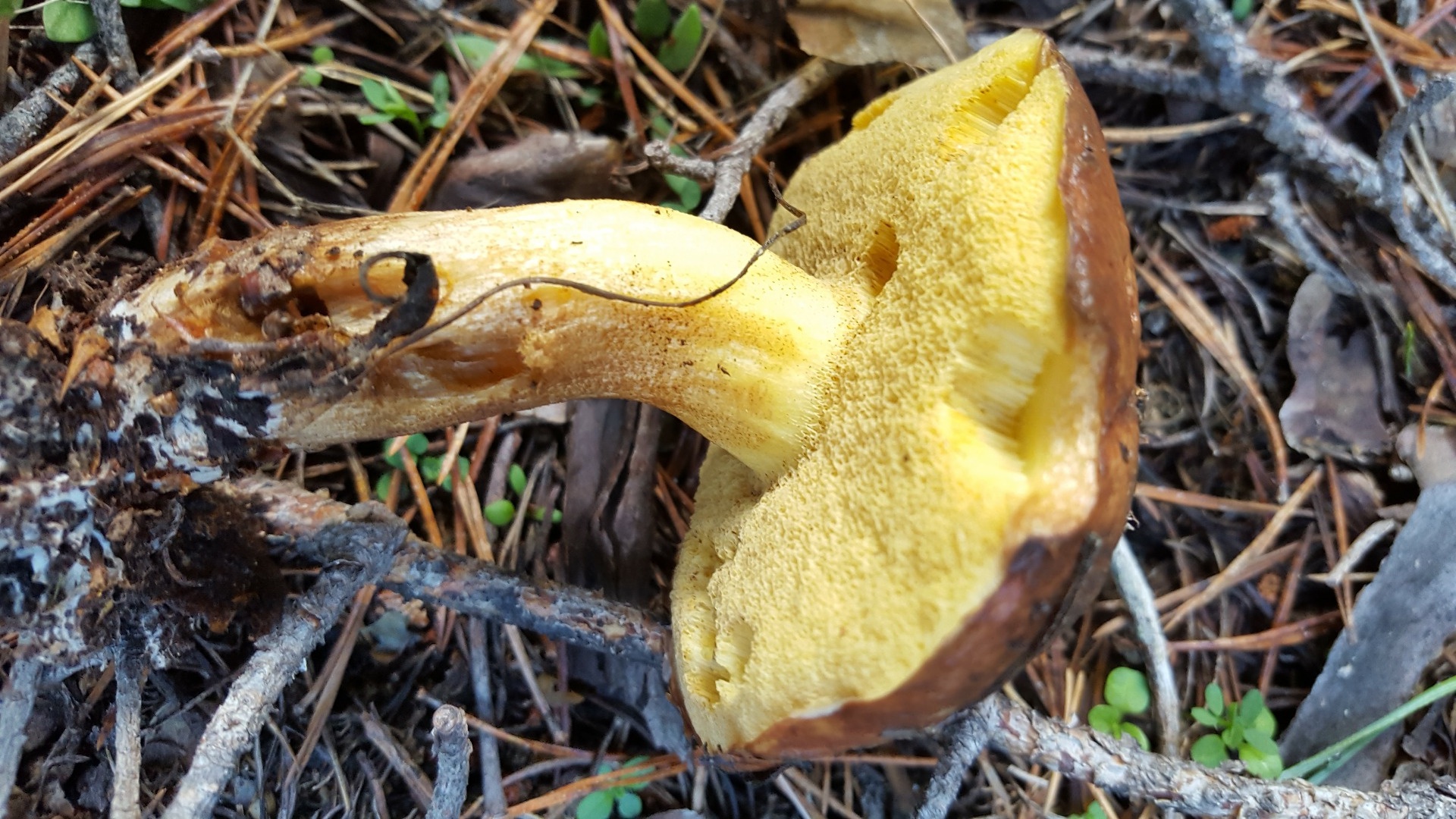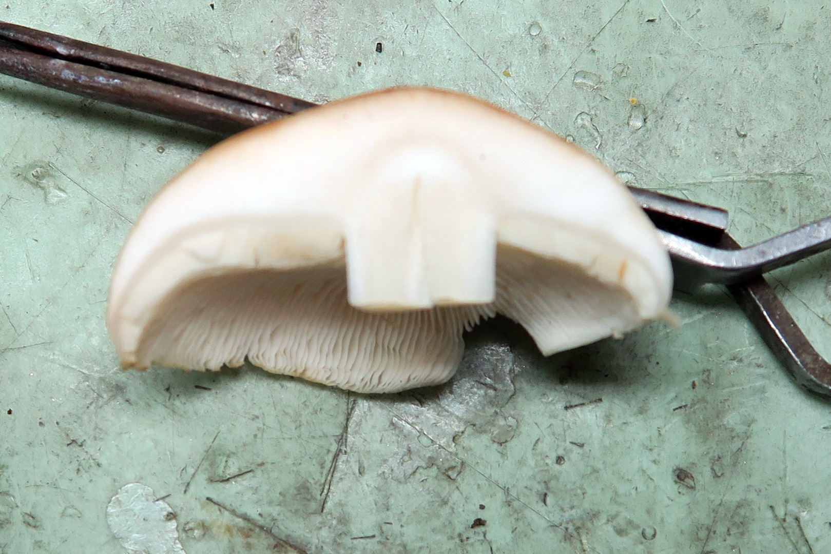 Sección de un ejemplar joven de Rhodocollybia maculata.