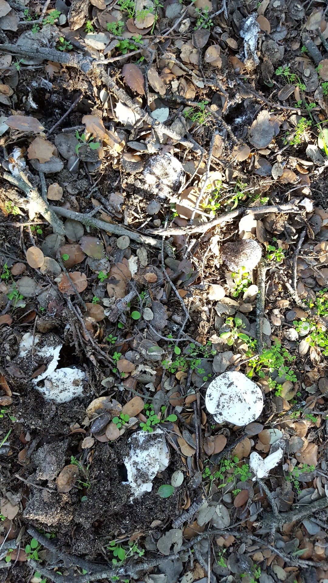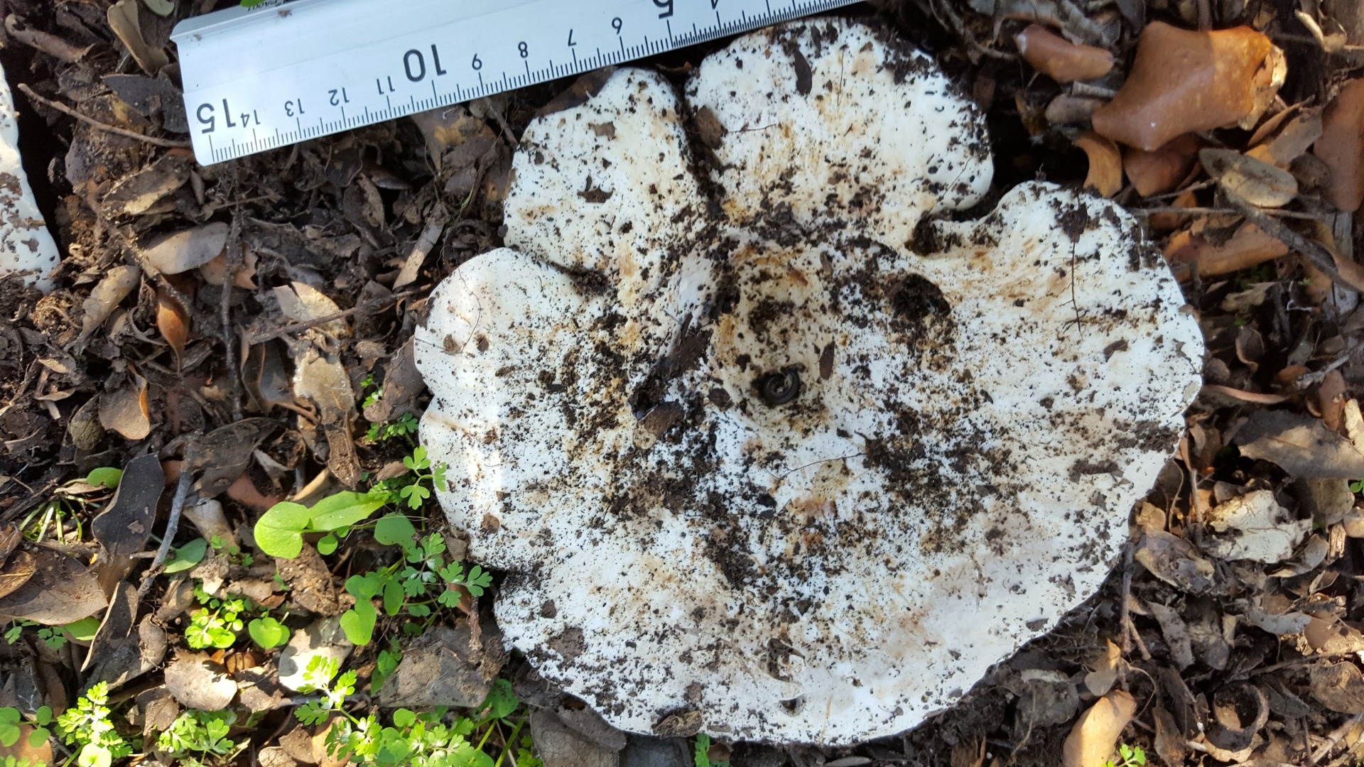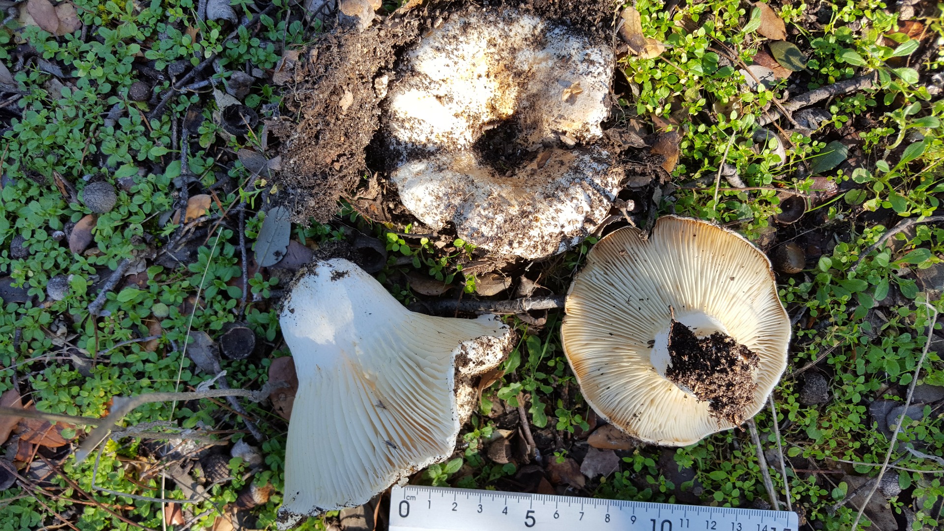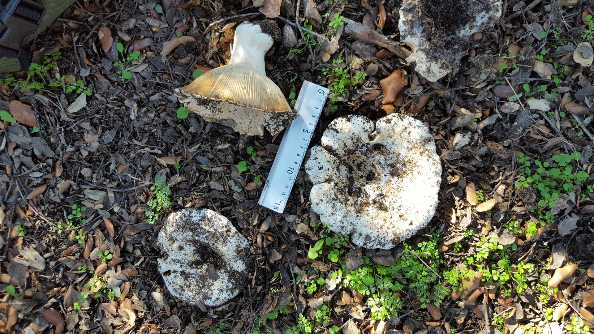2) Leucopaxillus giganteus, esta la había visto en pinares de montaña, pero nunca en un encinar, bajo una encina adulta, en un gran corro/arco. Huele suave la joven y desagradable la adulta.
