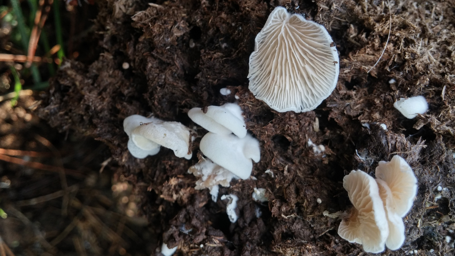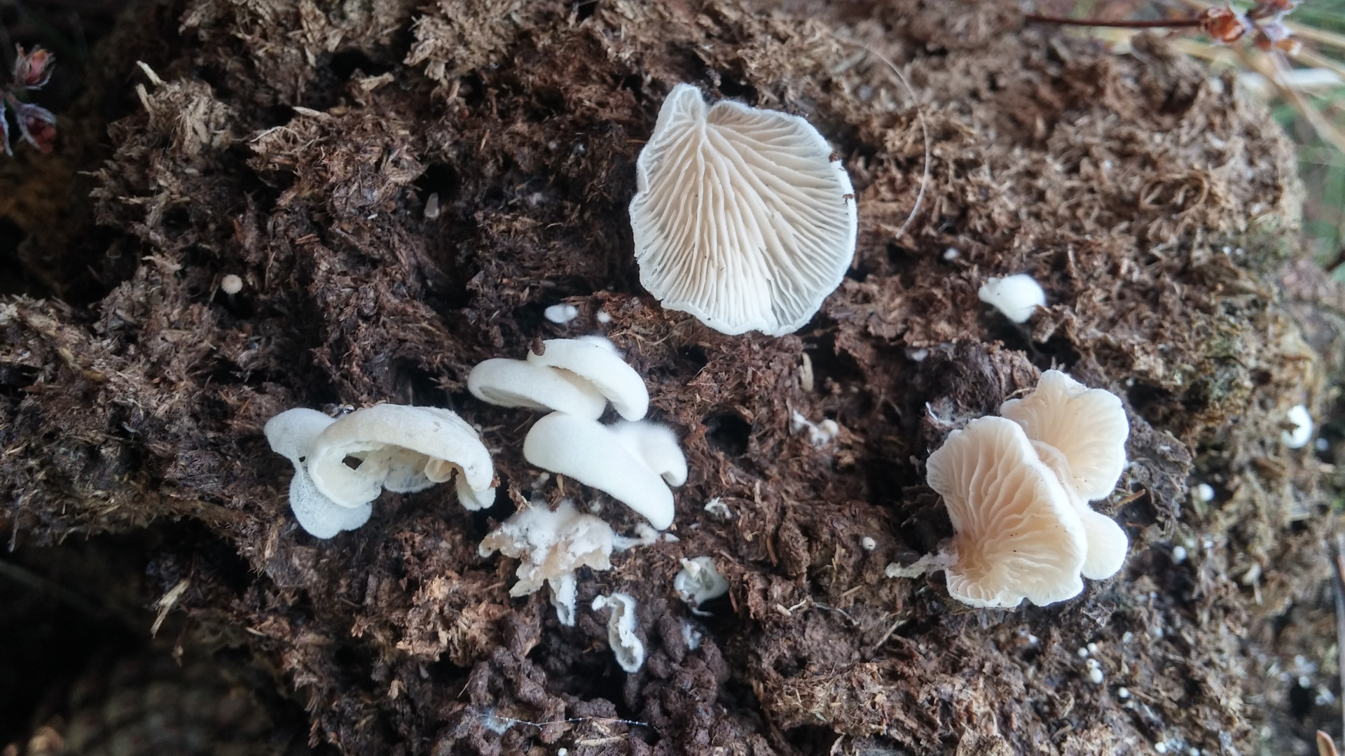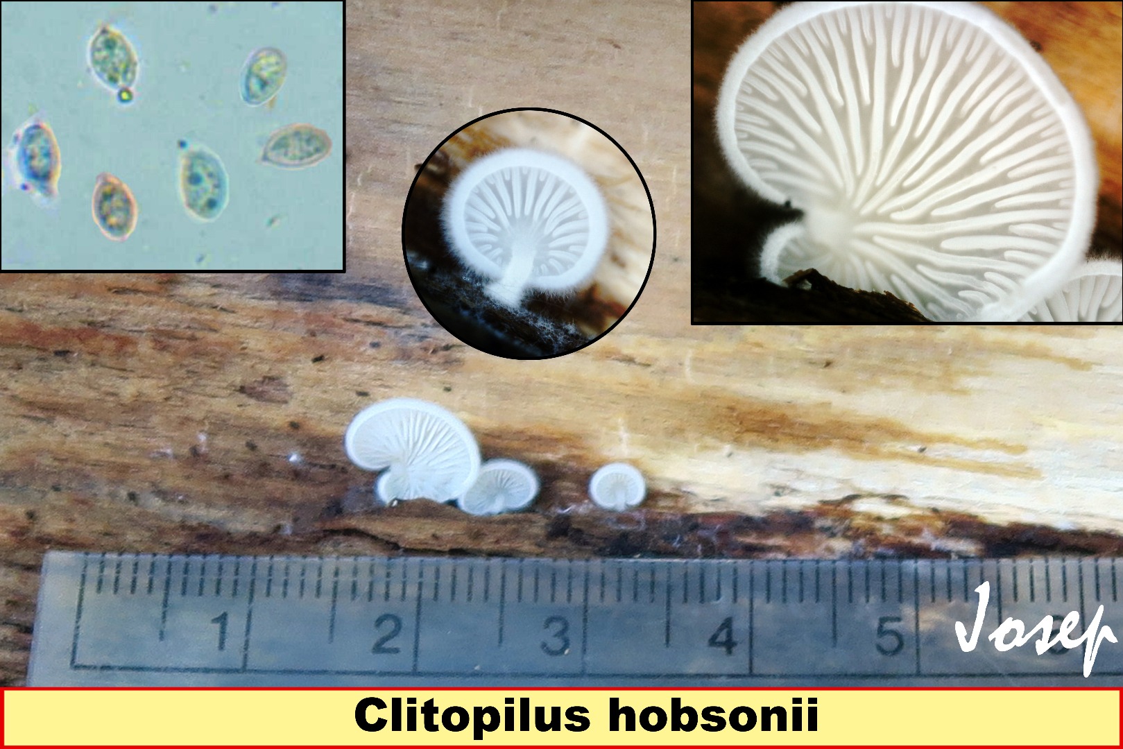 Hola Héctor, la primera me descoloca un poco su tamaño, ya que tres cm. me parecen mucho, pero me parece advertir un tono un poco rosado en las láminas de los ejemplares adultos, podría tratarse de Clitopilus hobsonii, esta crece en el suelo y sobre troncos podridos y no descartaría también sobre estiércol, su microscopía nos sacaría de dudas, yo dispongo de toda ella por si te hiciera falta, te dejo un enlace y una imagen mía de la especie.