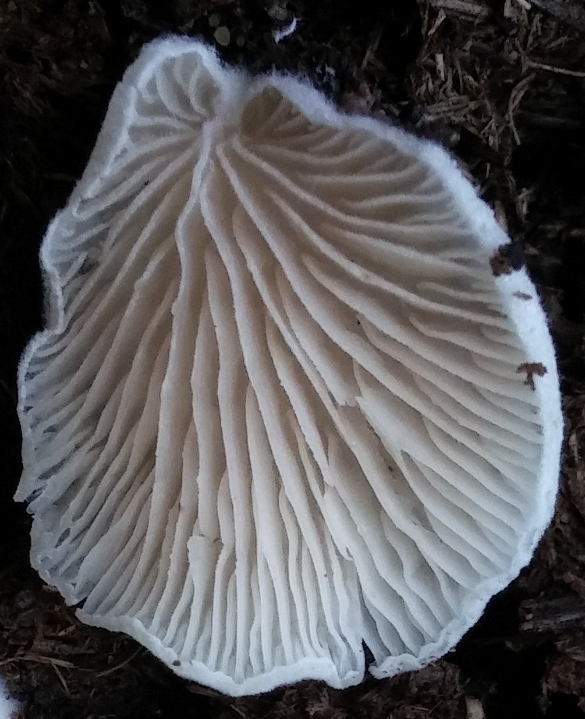 Es que a primer golpe de vista no me parece un Crepidotus, en este caso el color de la esporada en masa sería muy importante.