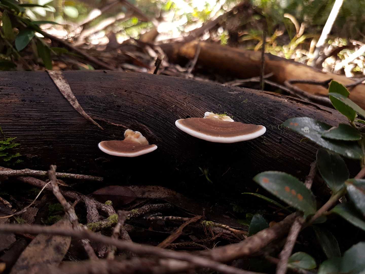 Todos ellos en el mismo tronco. En otro lado estaba la versión madura. Esos pequeñines son las formas inmaduras del Ganoderma adspersum. Después de haberlos visto varios días, en varias condiciones climáticas, secos y húmedos, no me queda ya ninguna duda. De hecho, en ese bosque hay Ganodermas adspersum por doquier. El último que me encontré, hoy, fue éste: