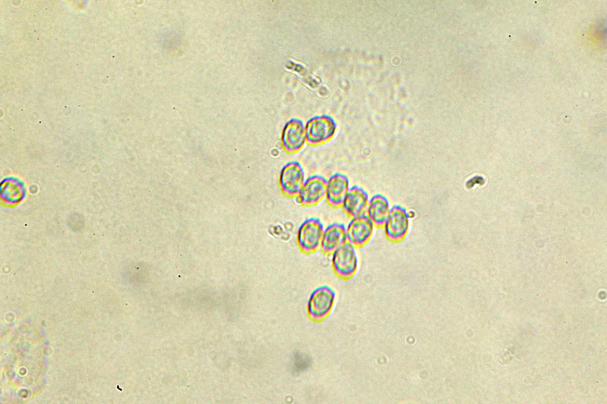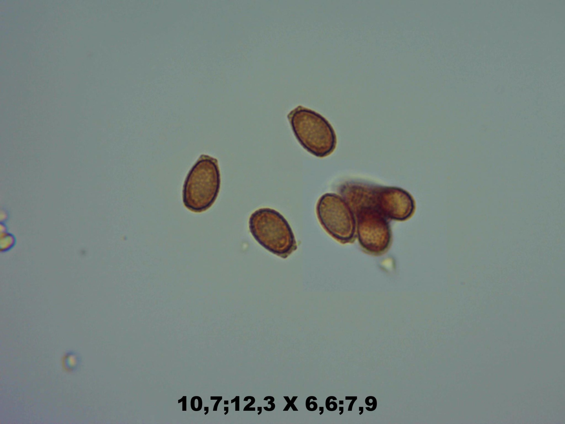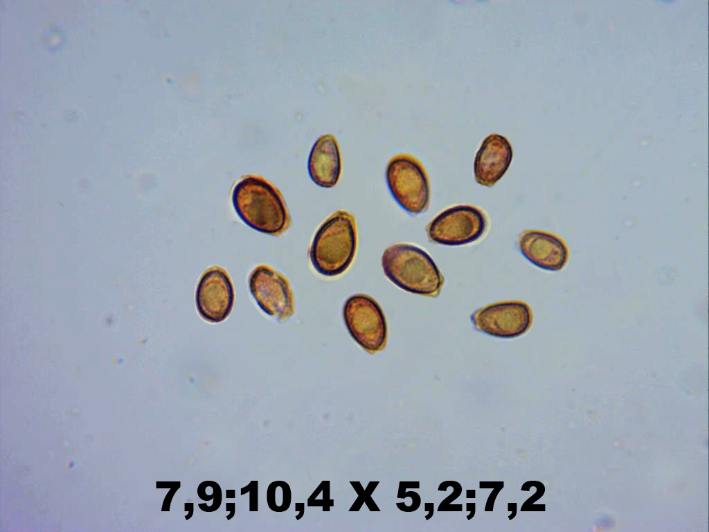 Hola Hernán, haría falta una imagen mejor de las esporas, las medidas que indicas no se corresponden con Hebeloma, deberías asegurarte además de que lo tienes bien calibrado. Las esporas de Hebeloma son de forma almendrada y de un tamaño bastante considerable.