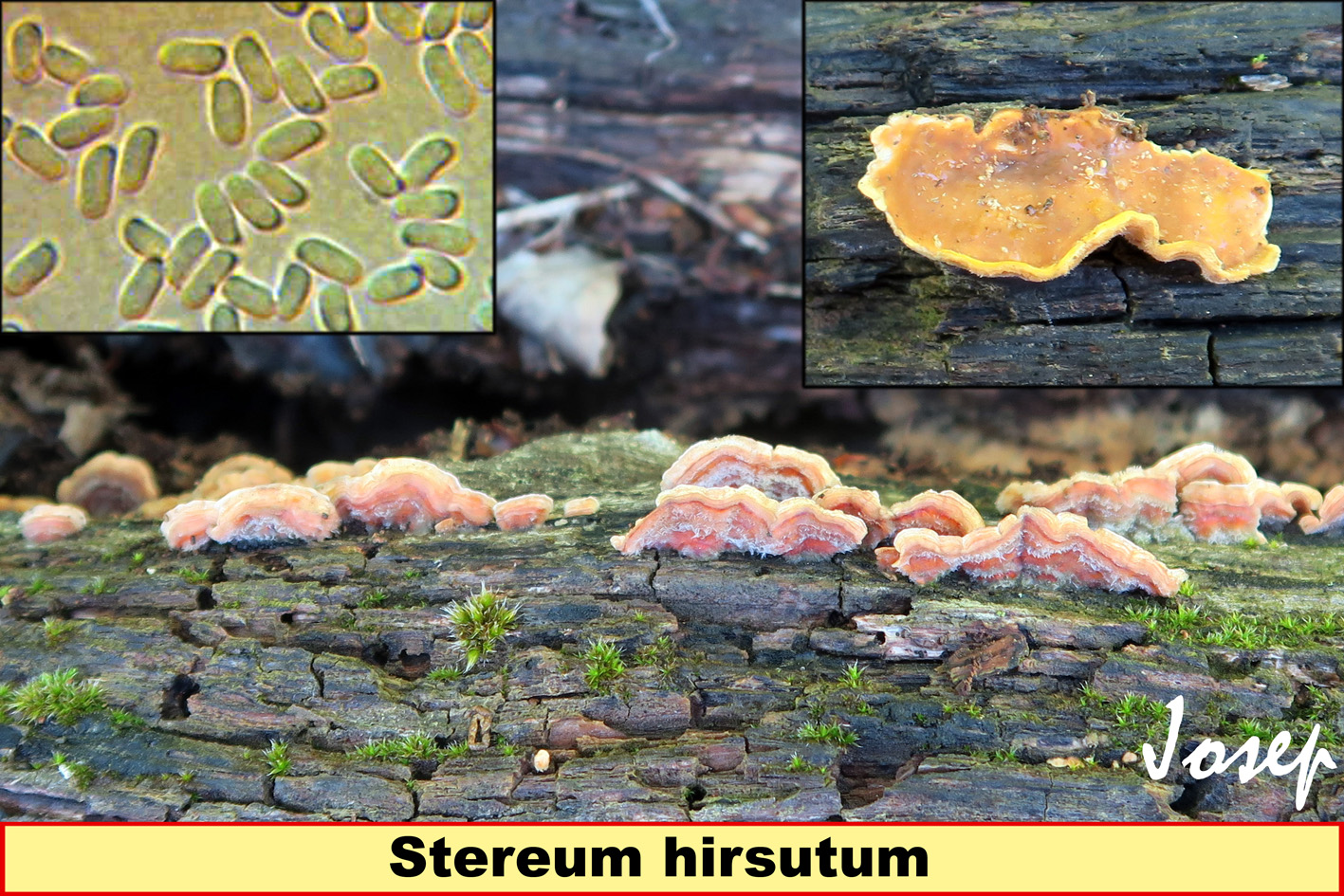 Angel la primera de tus fotos me parecen Gloeophyllum sepiarium, la siguiente también Stereum hirsutum.
