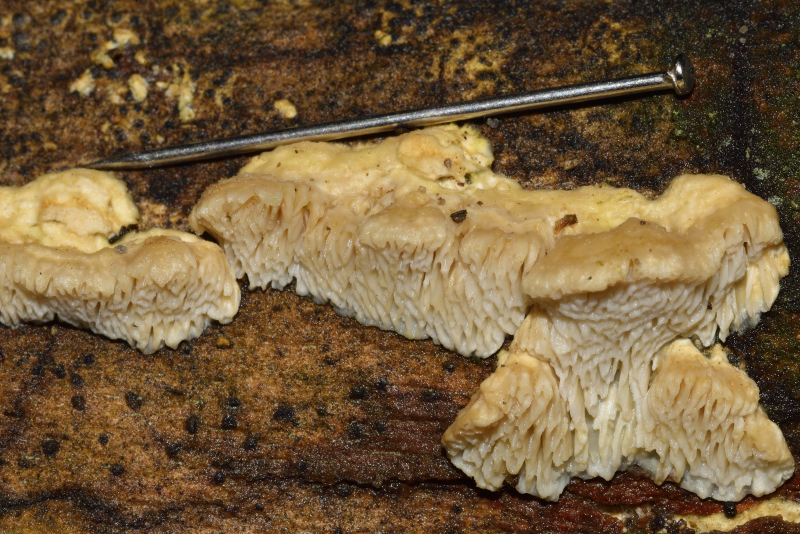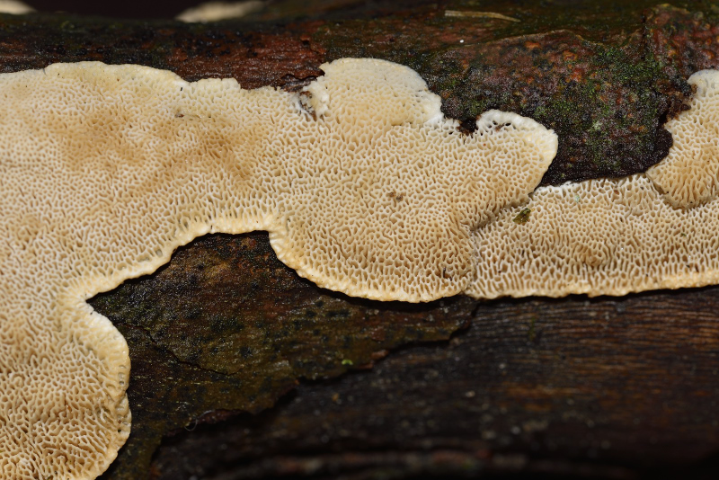 Hola Iñigo, opino al igual que mis compañeros, el Cinereomyces lindbladii, lo conozco perfectamente y generalmente no presenta un himenio tan laberíntico como el que nos muestras, personalmente me recuerda por su aspecto, sobre todo el de la tercera imagen, a Antrodia sp.