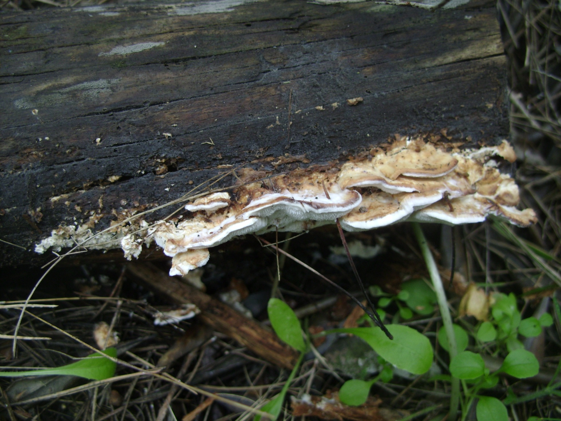 . Unas Pholiotas highlandensis en los restos de una hoguera; también muy secas. Por último una seta que veo mucho y que debe ser muy comun pero que no consigo identificar. Tal vez Trametes versicolor.