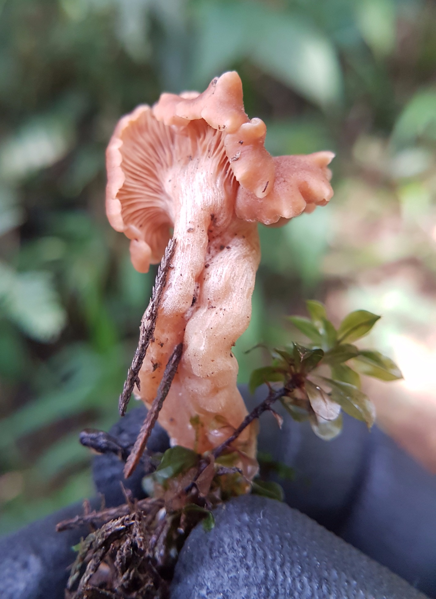 Creo que se me parece más a Craterellus, pero con tu sugerencia de Laccaria, me acabas de ayudar a identificar un hongo que hacía meses me rondaba en todas mis travesías.