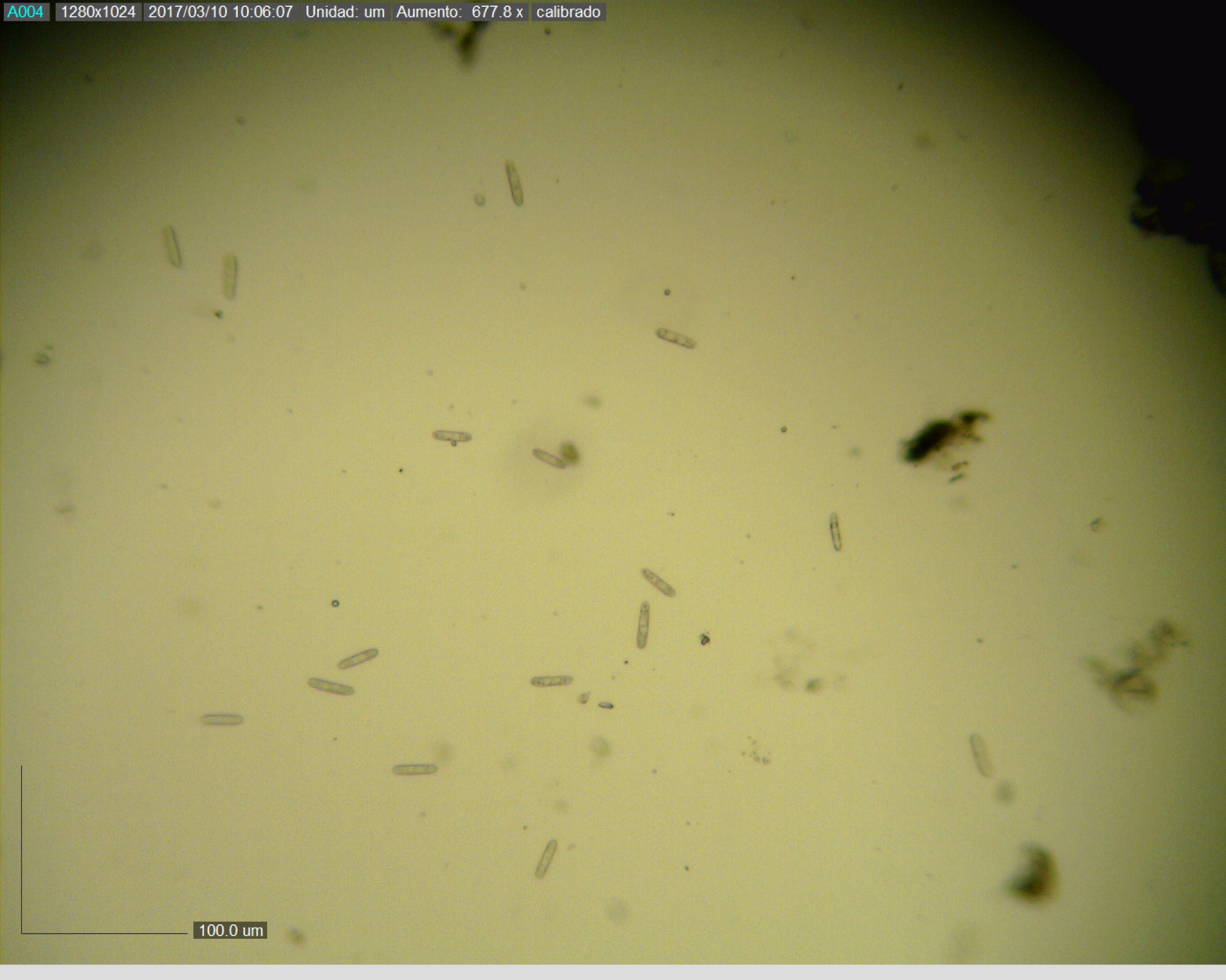 Gracias Joseba, si lo de la imagen son las esporas como supongo, no encajan con Venturia oleaginea, aunque tampoco me cuadran con el género Trochila, tendríamos que obtener más imágenes de microscopía, comprobar si presenta ascas (ya que supongo que se trata de un ascomiceto) y las medias de estas.