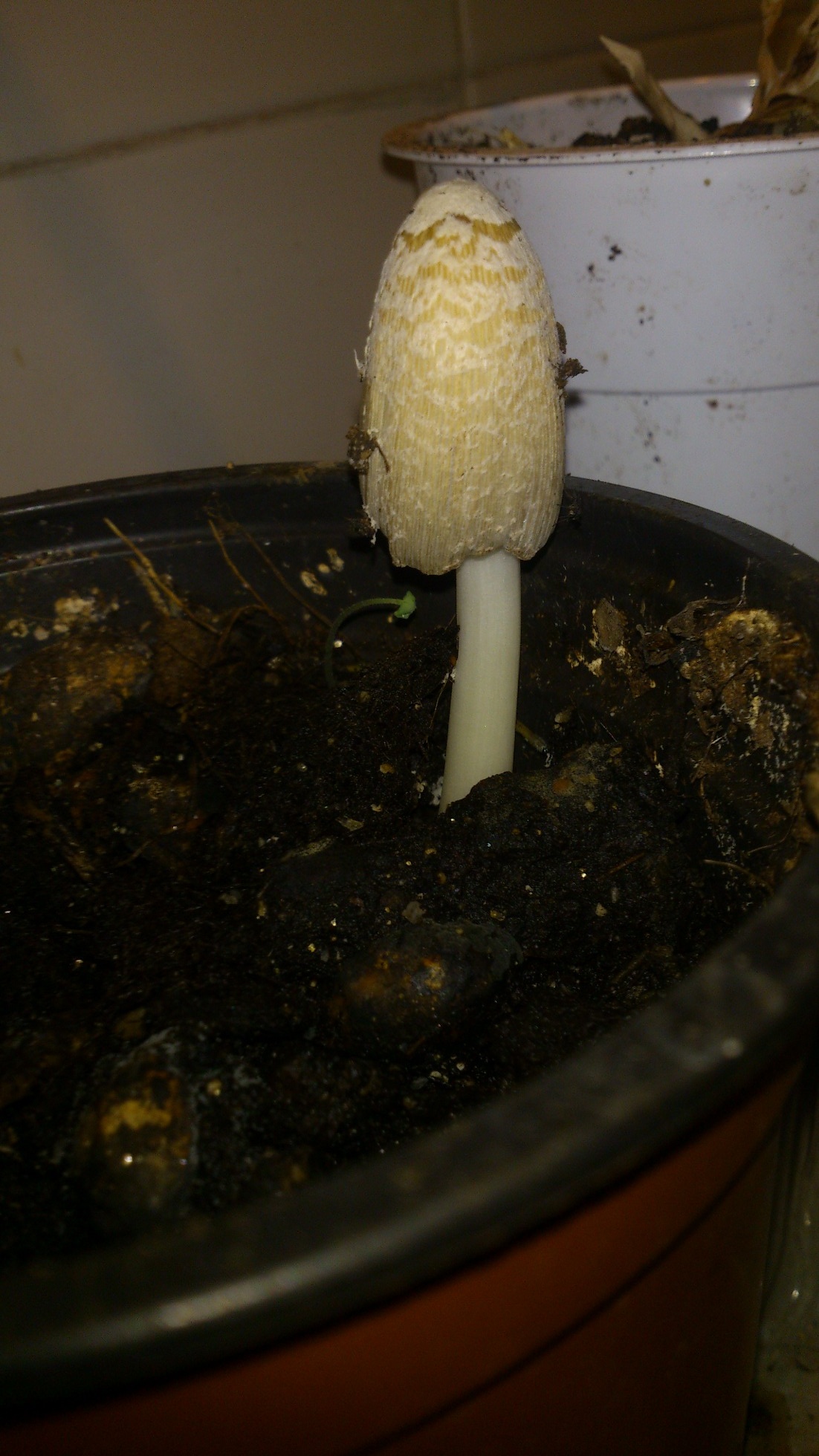 Hola , Me salió en una maceta de mis casa que hice con un compost casero que lleva corteza de pino , madera de no se que arbol de los palillos dentales y madera de no se que otro arbol de los palillos del restaurante japonés total que me ha salido una seta que hace tiempo vi en foto , y a dia de hoy no se cual es . No se si es una amanita o cual será .... si alguien me echa una mano ... gracias .