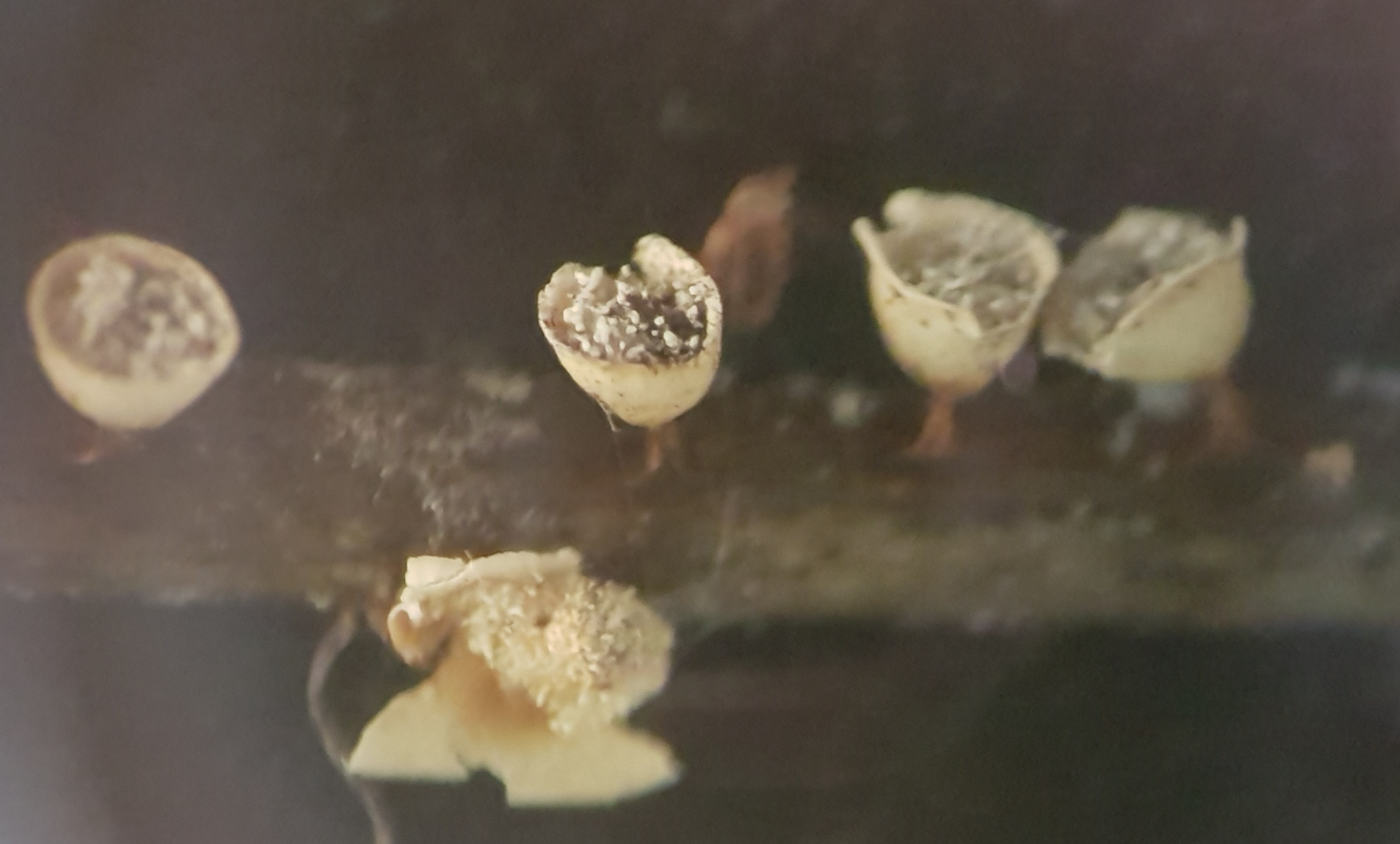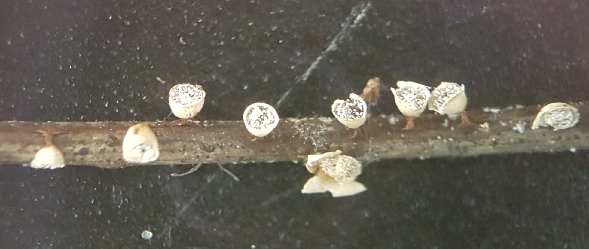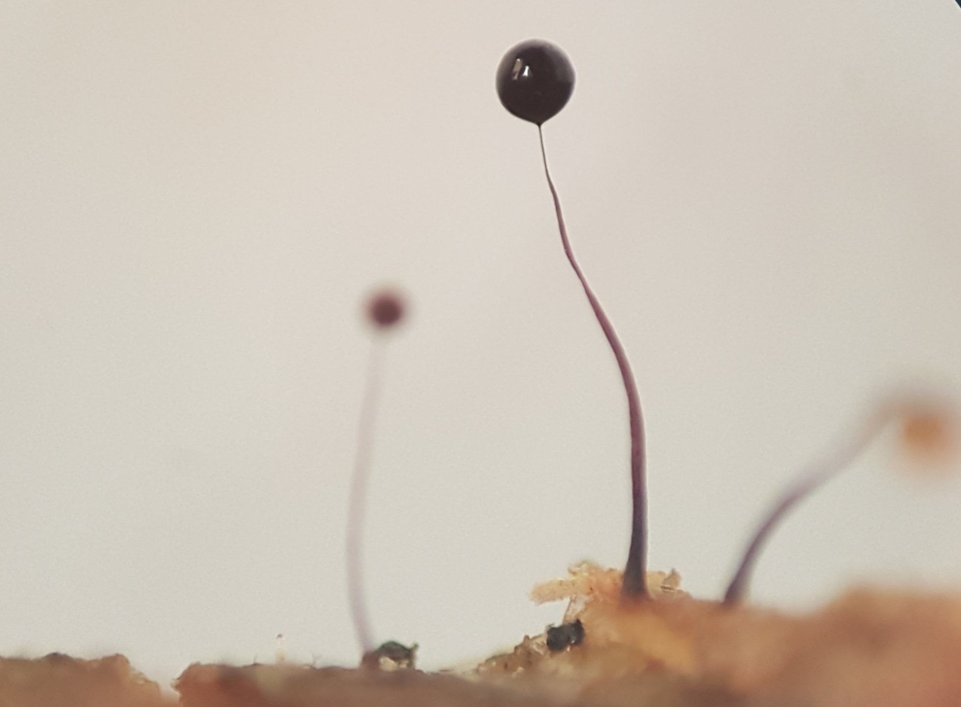La primera se parece mucho a Craterium minutum, aunque me imagino que habrá más especies dentro del género, me parece que esa será el nombre, ahora faltaría confirmar el apellido. La segunda, por dar otra opción se parece mucho también a Comatricha nigra.