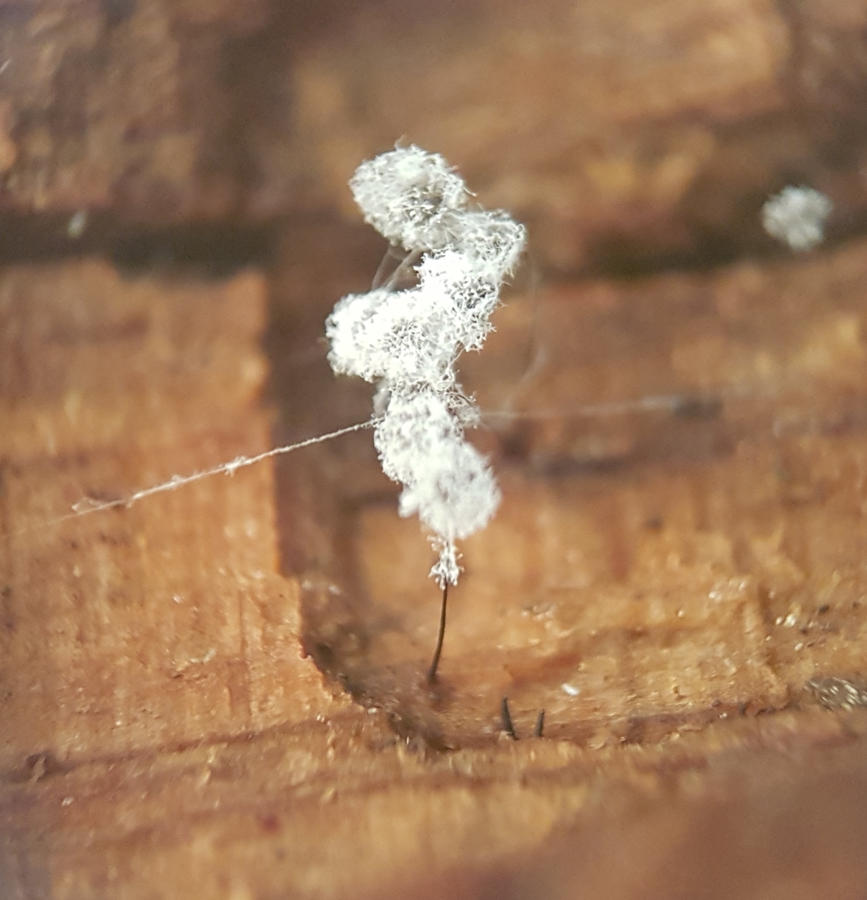 os vamos a presentar un par de myxos que Laura encontró en un paseo en un pinarico cerca de su pueblo, uno en acículas y el otro en madera. Ambos son preciosos