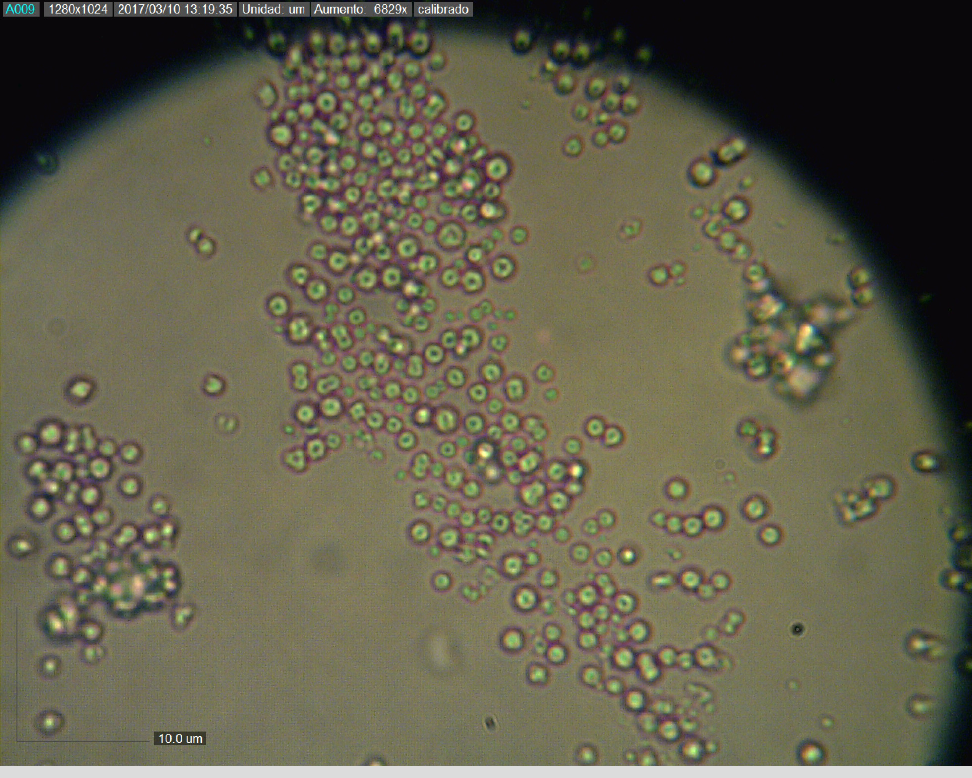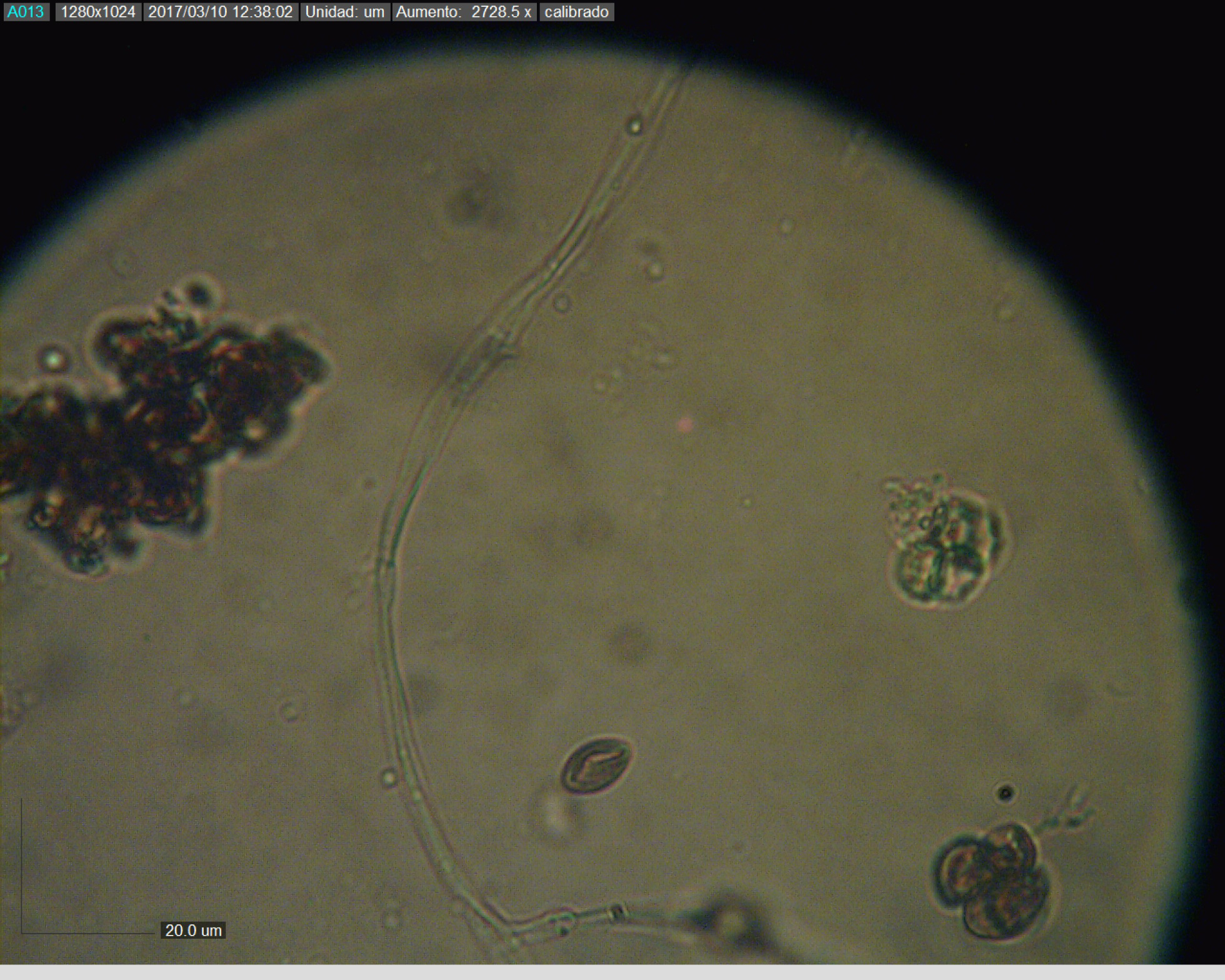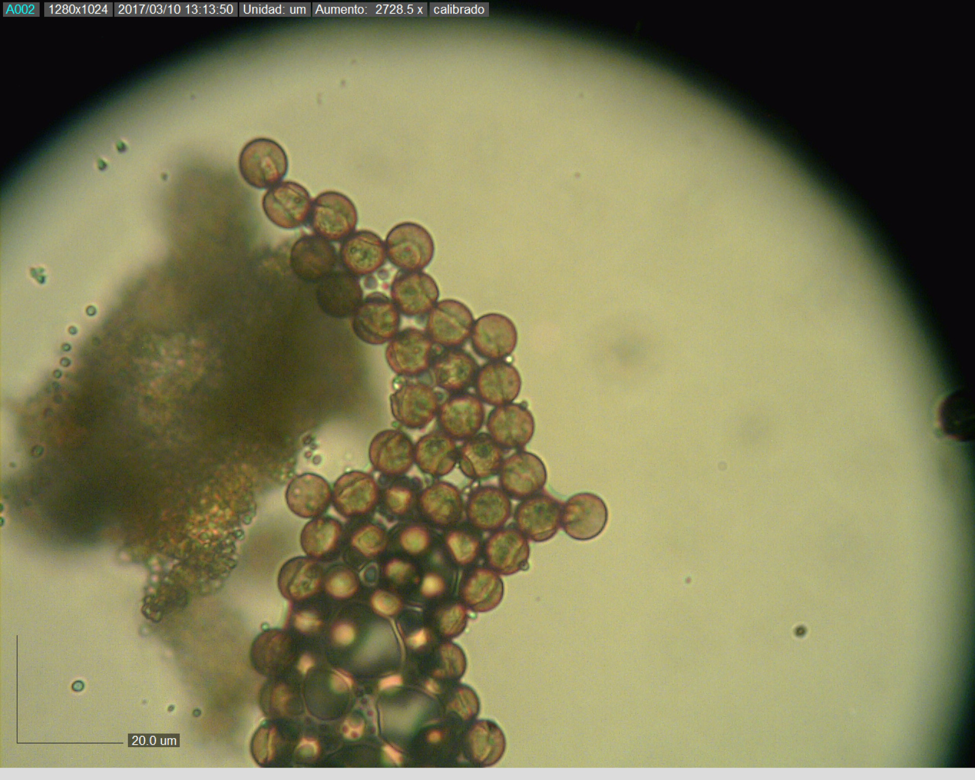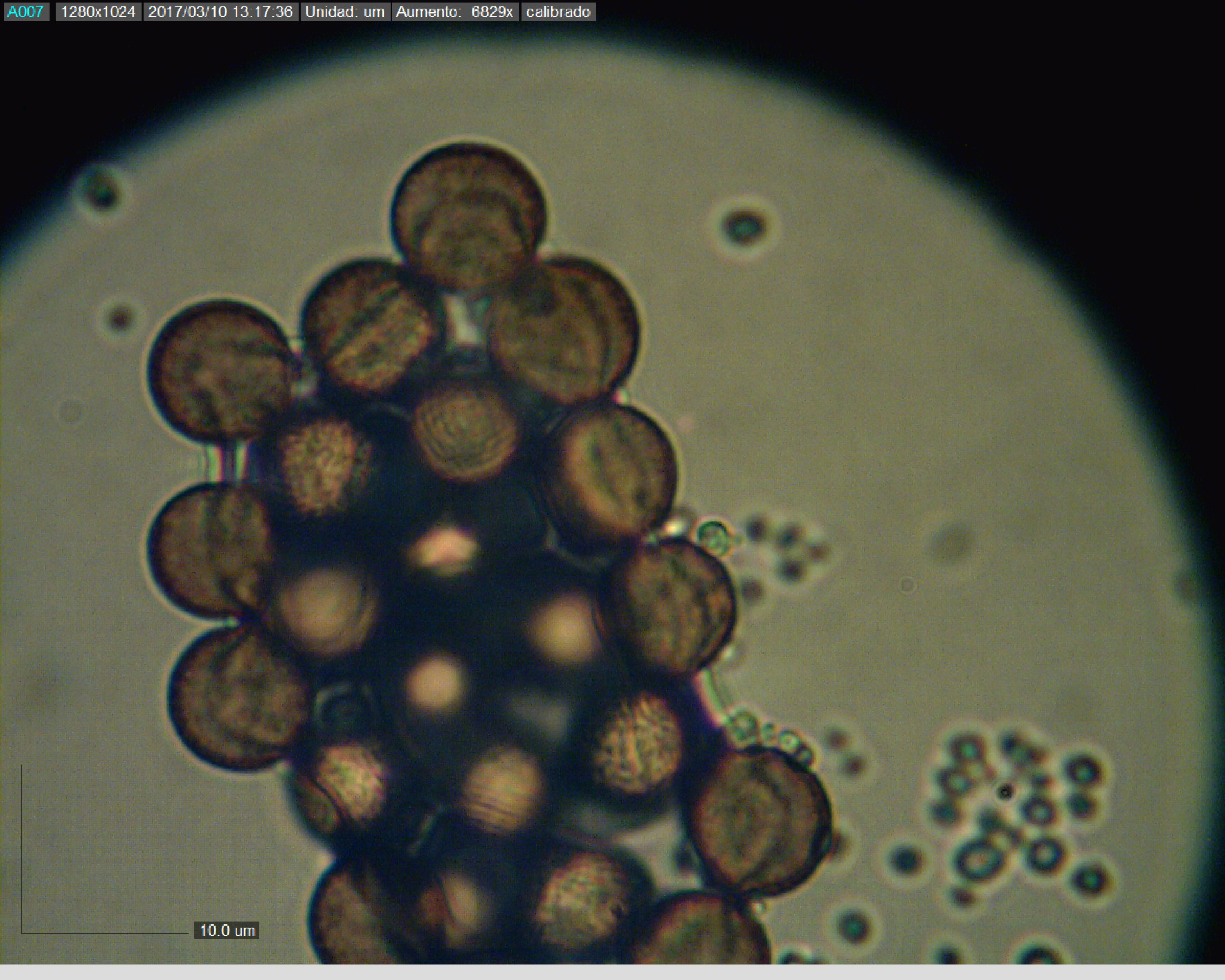 y vamos con la micro, no hemos podido encontrar mucho, sólo 2 estructuras circulares, y ni siquiera sabemos qué son