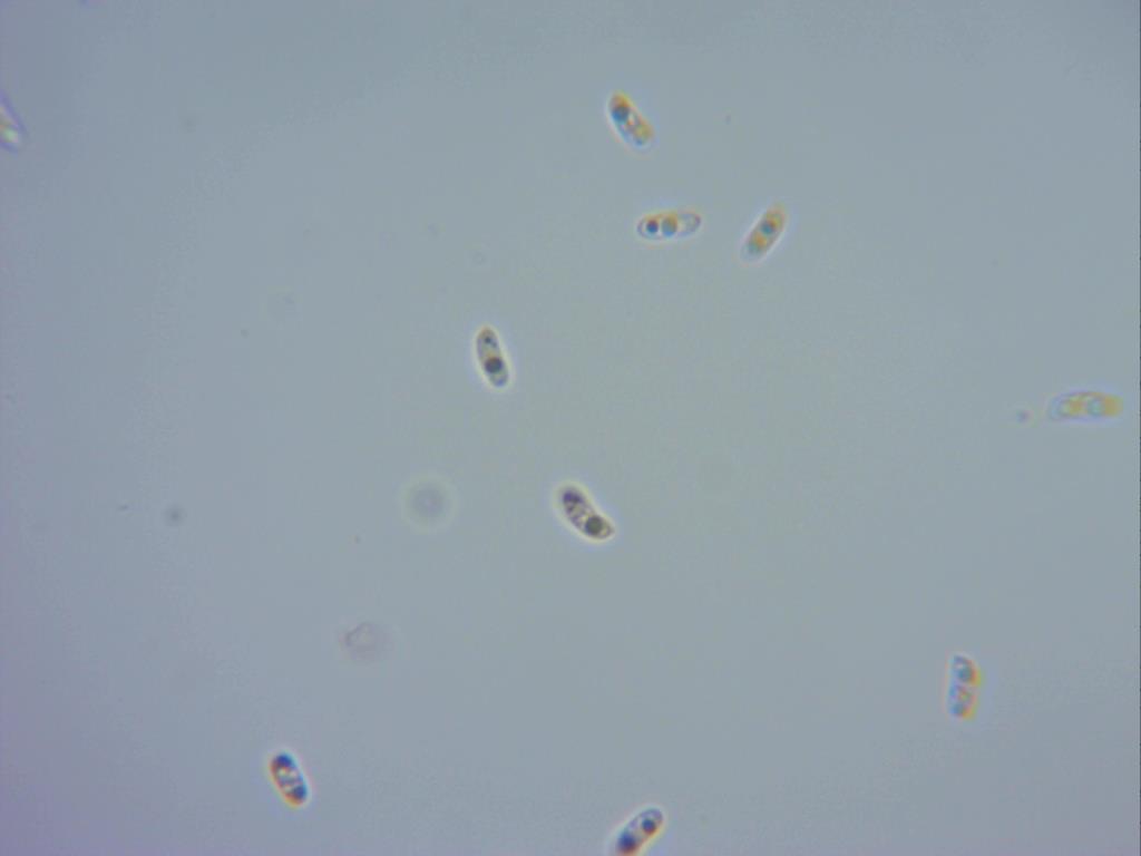 En este caso sus medidas de 5,8;6,5 X 2,2;2,6 micras, muy acordes con Polyporus brumalis y lejos de las 7,5;10 X 3;3,5 de las esporas del Dendropolyporus umbellatus.