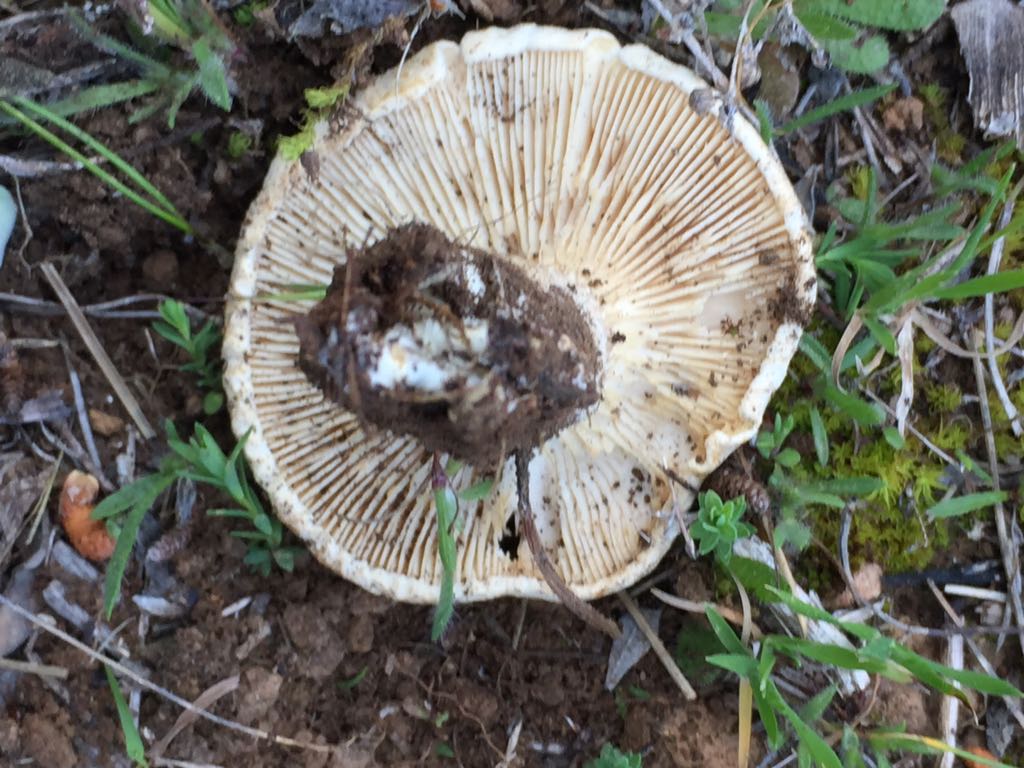 Hola Pepe, complicado sin más datos dar con el género. En la segunda foto, la del corte, las láminas parecen decurrentes, eso nos aleja de Hebeloma spp. Me temo que este tiene la esporada blanca.