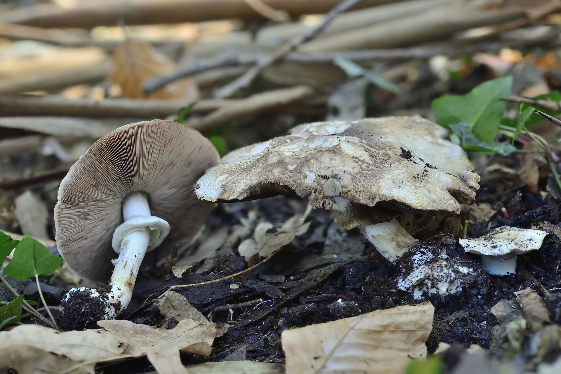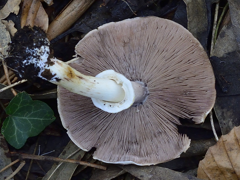 El sombrero del la pequeña seta seta que se ve a la derecha es totalmente aplanado y no globoso como debería ser en un xanthodermus.