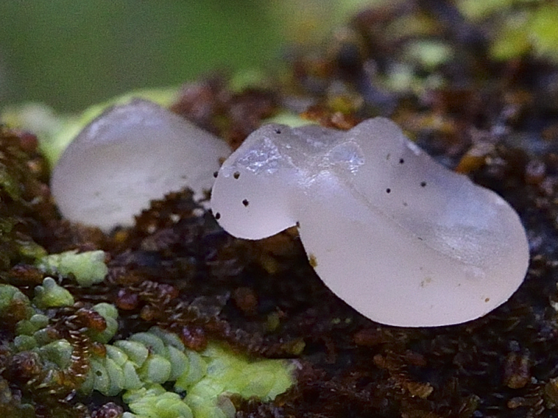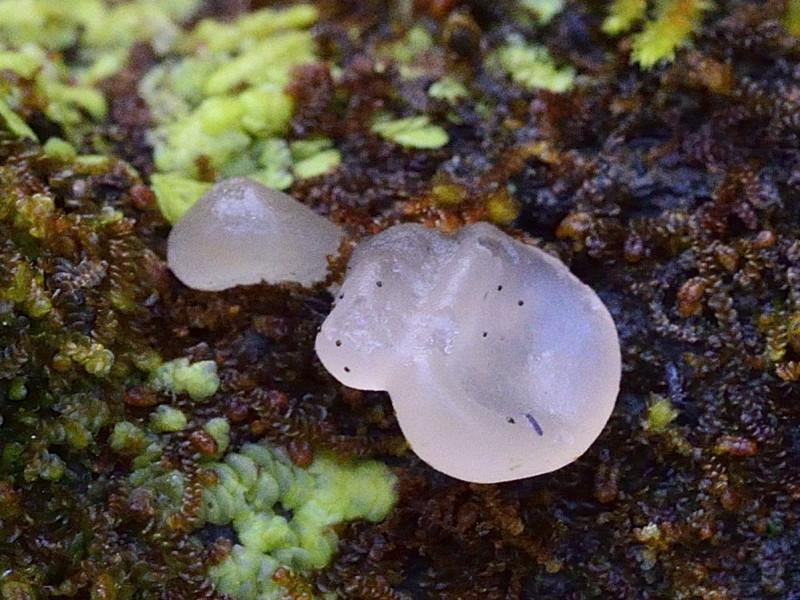 Medían unos pocos milímetros, las ha visto Joseba en el paseo de hoy a la mañana, sobre tronco en descomposición, en ribera, y me ha dicho un par de opciones de esos nombres raros raros que ya ni me acuerdo.