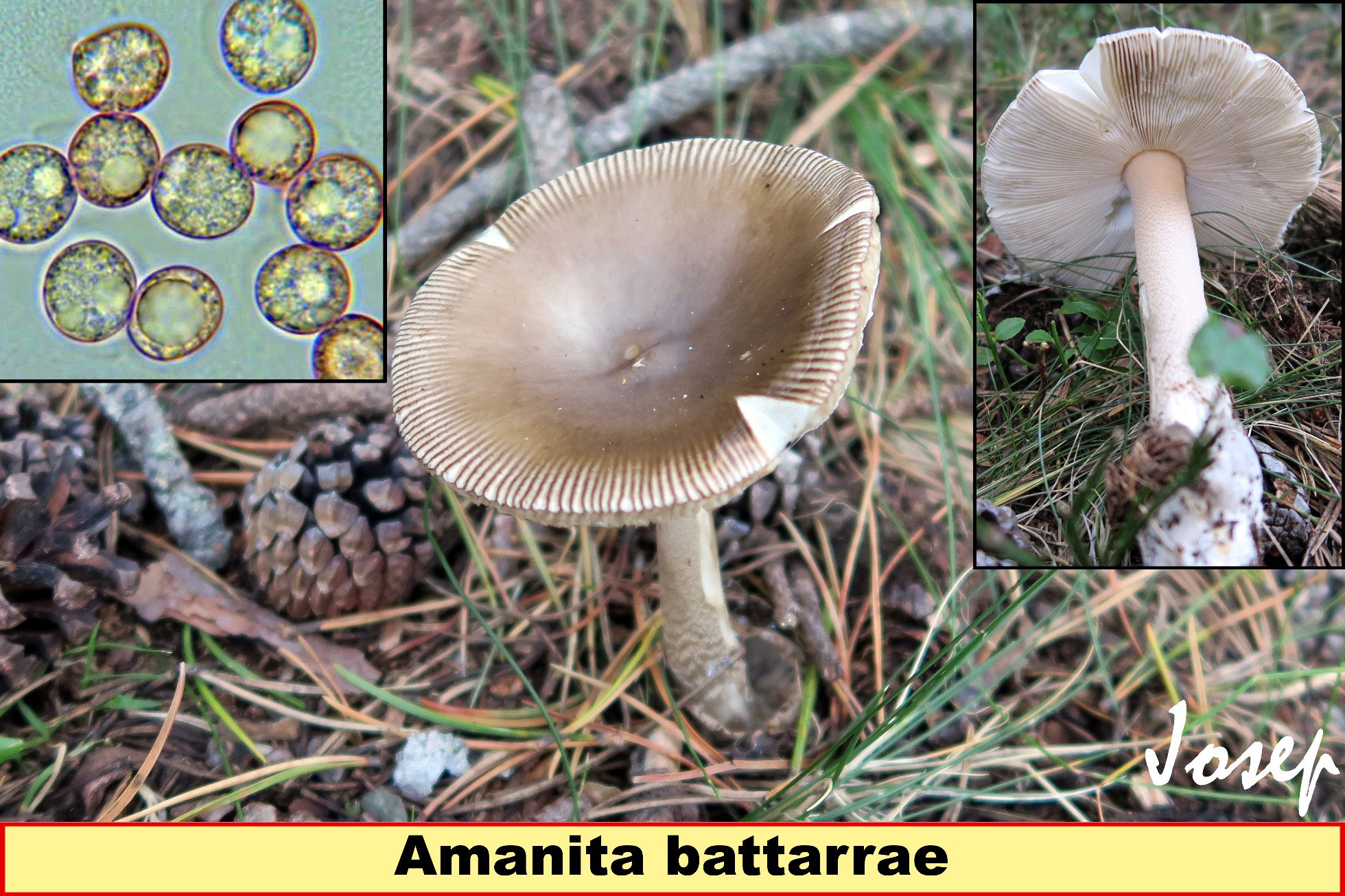 Hola de nuevo Iñigo, con la Amanita no me he mojado ya que la Amanita excelsa no la he tenido en las manos, sigue siendo un cromo que me falta, aunque la de tus imágenes estoy de acuerdo con Joseba y sí que me lo parece. Por si te sirve y ante la opinión de Juan Antonio, te dejo una imagen mía de la Amanita battarrae, a esta si que he tenido el placer de pasarla por el micro, es una de las que me encuentro habitualmente y francamente la de tus imágenes no me lo parece.