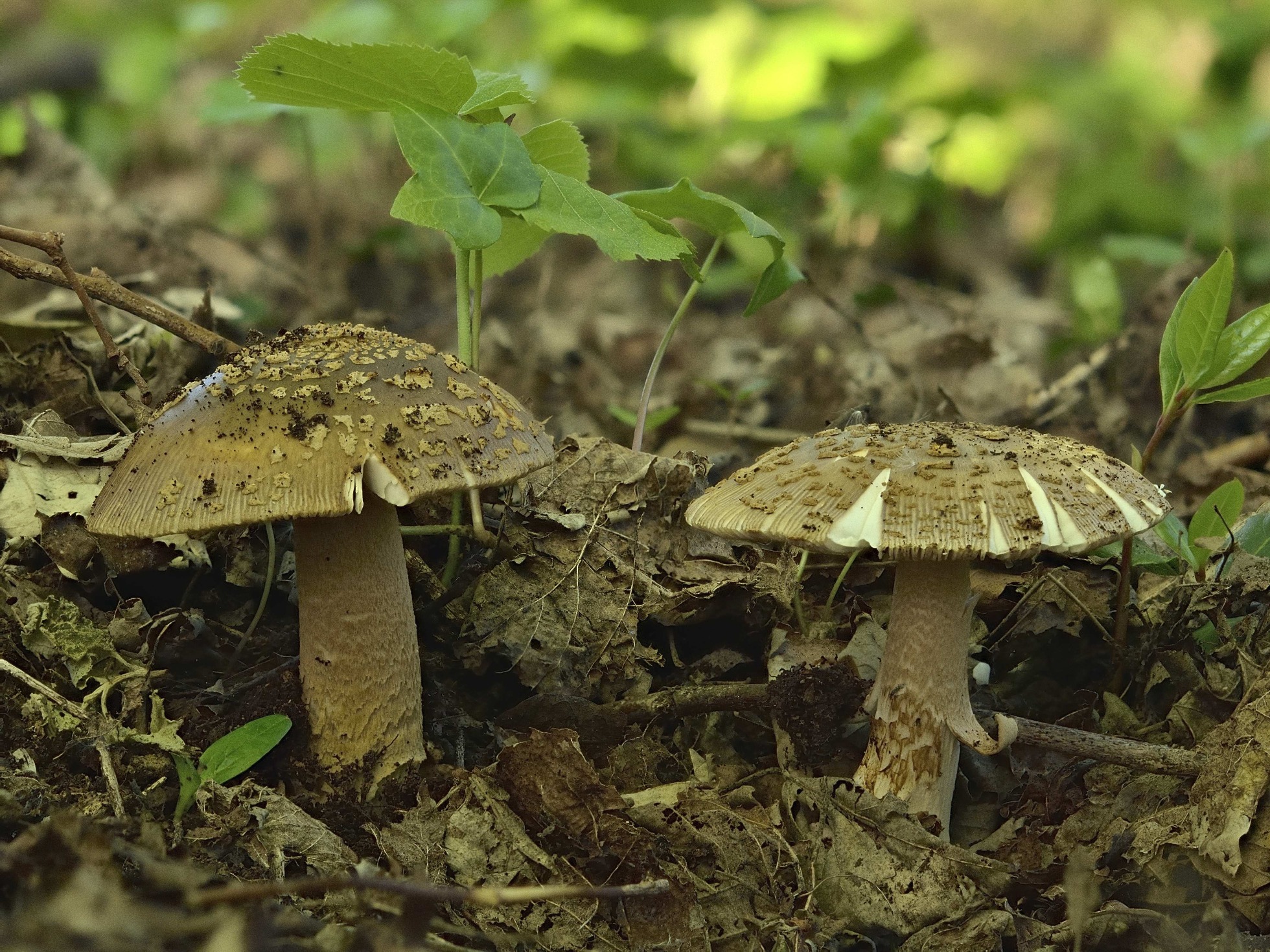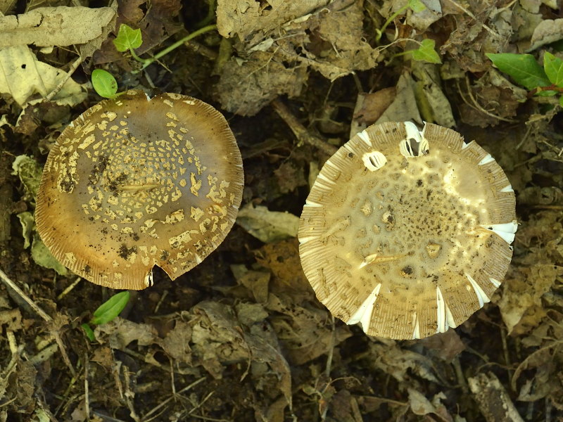 Solo añadir a lo ya dicho que en mi modesta opinión, me parece que la Amanita es Battarrae (sombrero mamelonado, de color oliváceo mas oscuro por encima del margen estriado, pie jaspeado sin anillo y con volva saciforme de color blanco-ocre, que no se aprecia muy bien en la foto)