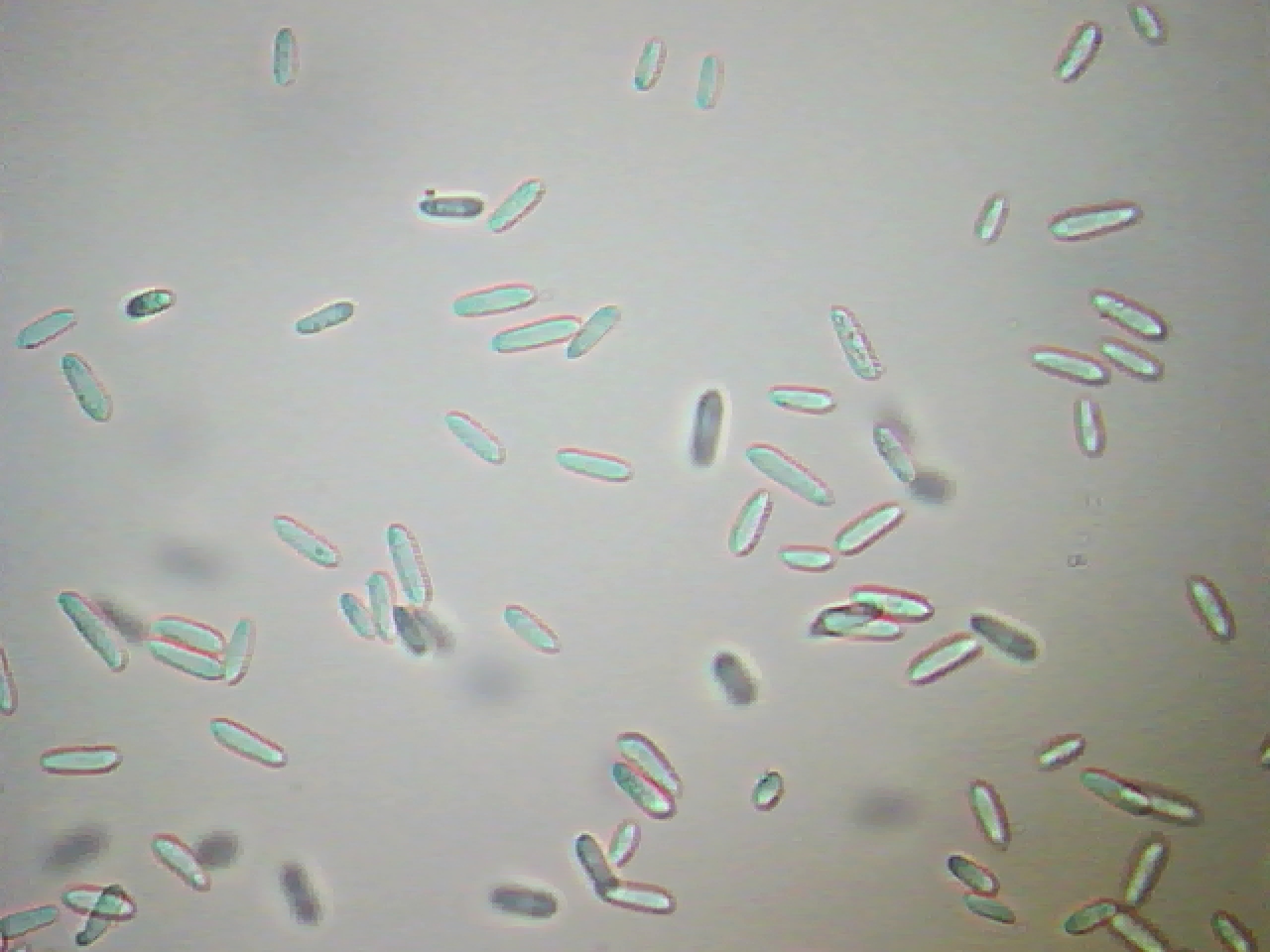 Las esporas: Me = 13 × 3.9 µm ; Qe = 3.3