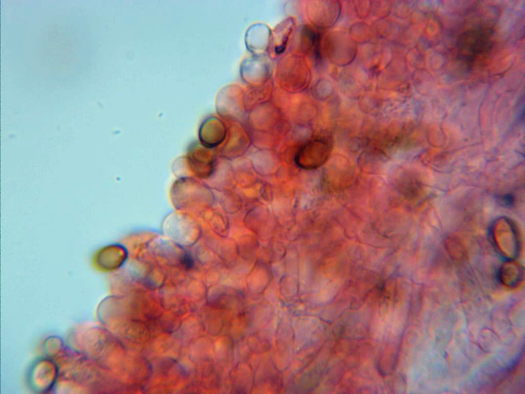 Si bien es cierto que los ejemplares estaban deshidratados en el momento de practicar mi estudio, en un caso llegué a dejarlos de un día para otro para que se hidrataran completamente, lo único que logré fue unas imágenes repletas de bacterias y una pileipellis igual que la mostrada.