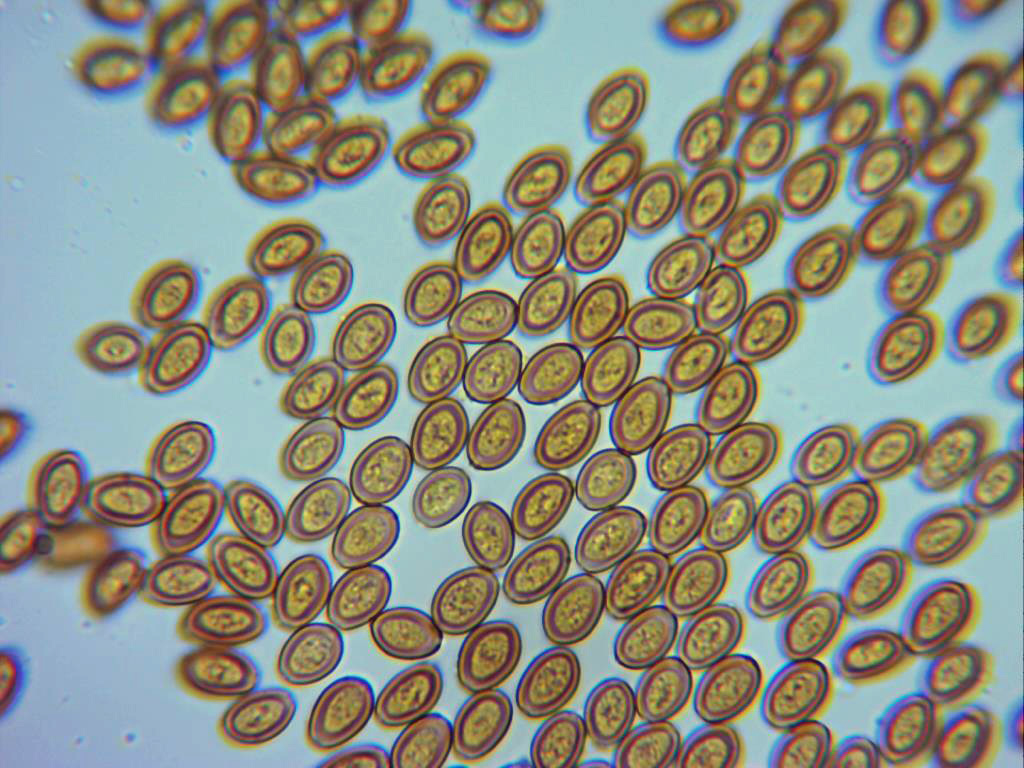 Esporas elipsoidales, de pared gruesa y con un marcado poro germinativo.