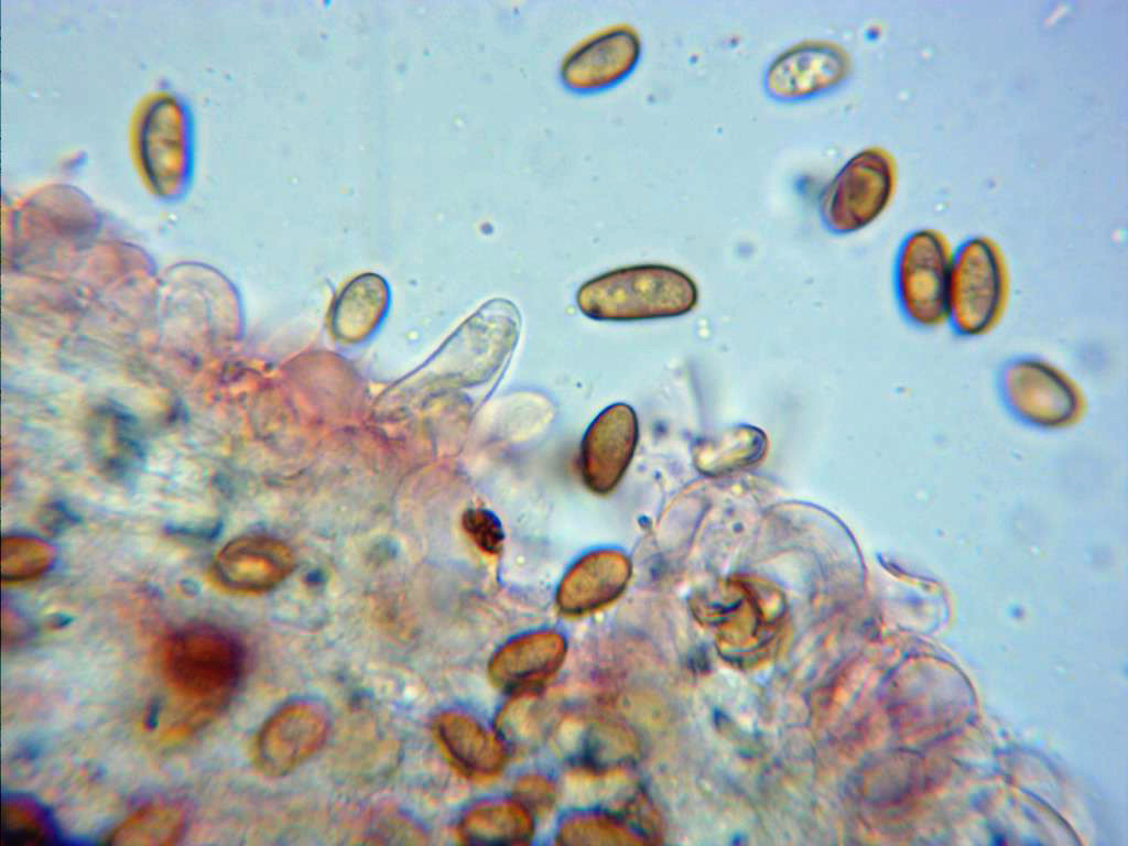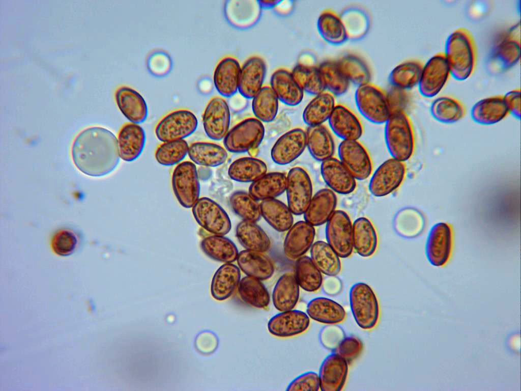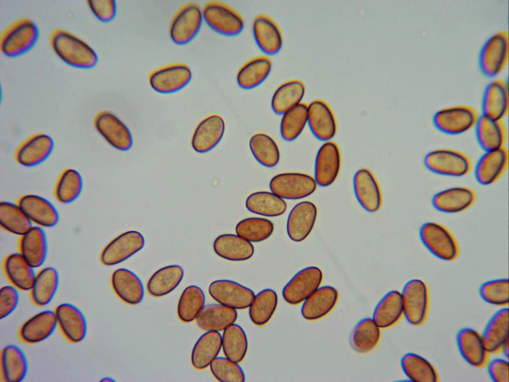 Las esporas elípticas, de pared lisa y gruesa, aunque no de doble pared, con contenido granuloso más visible en reactivo de Melzer.