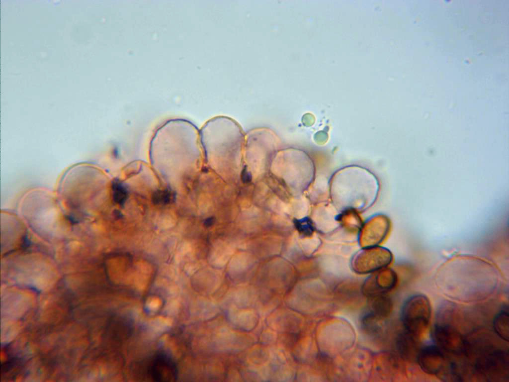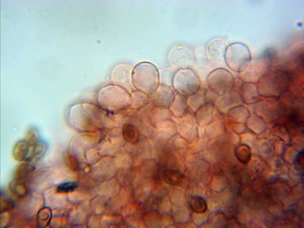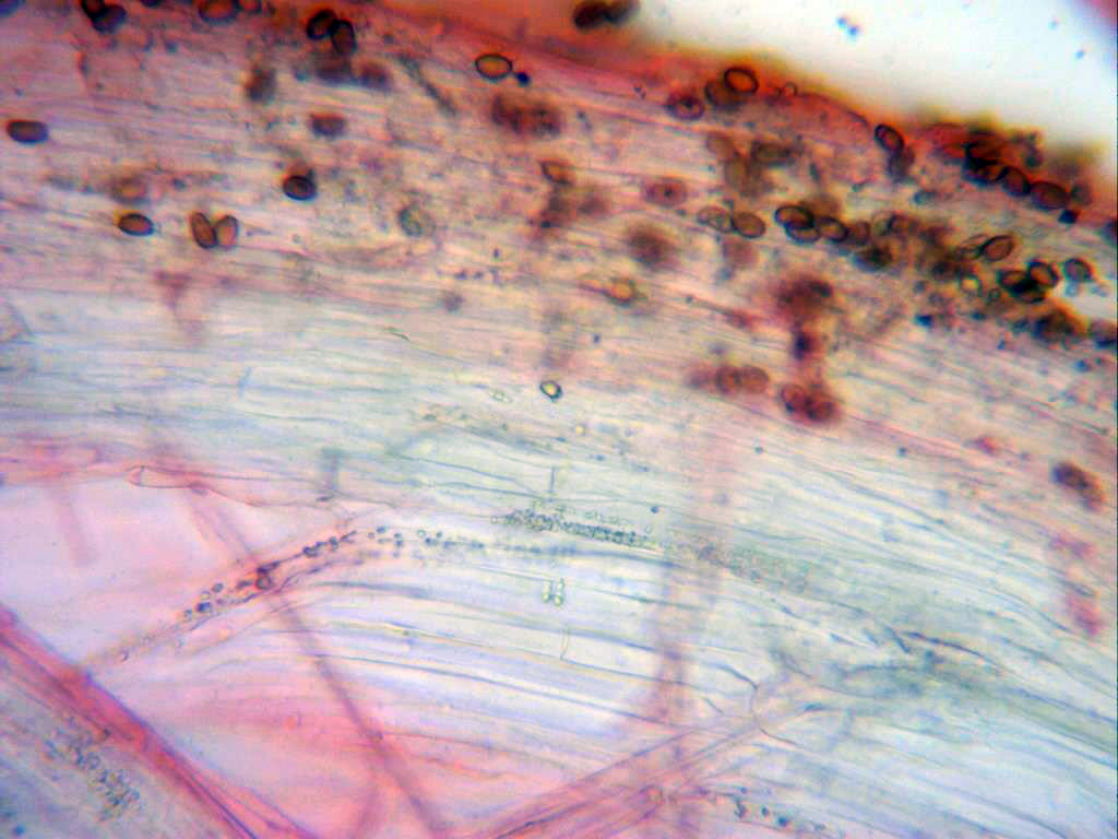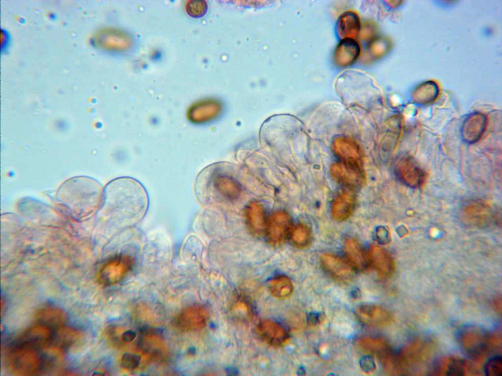 Himenio a 1000 aumentos, no pude observar ningún pleurocistidio en mis muestras y eso que lo intenté en múltiples ocasiones.