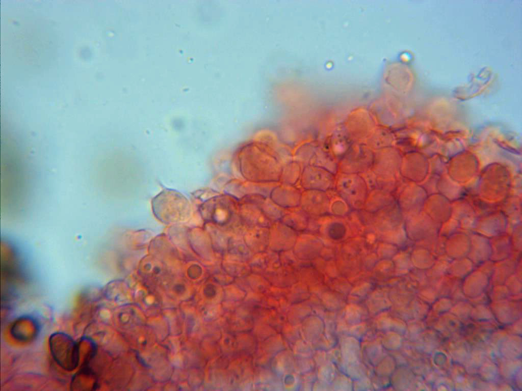 Hola Josep, en estas imágenes vuelve a fallar la pileipellis, parece que la muestra está dehidratada y la vista no es correcta, observa... ¿a que no eres capaz de saber la forma y altura de los elementos que componen la pileipellis?